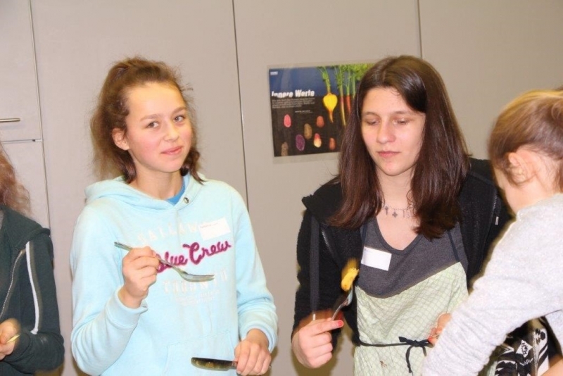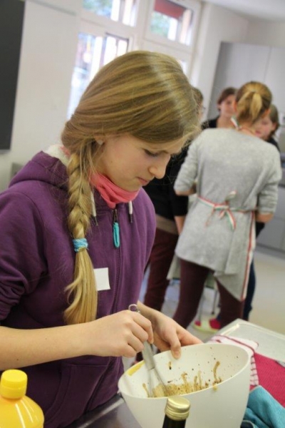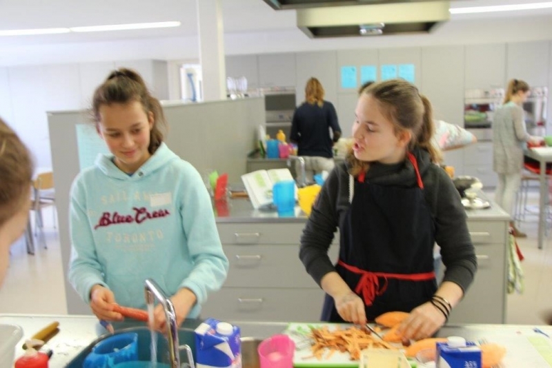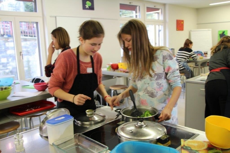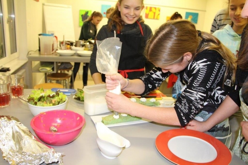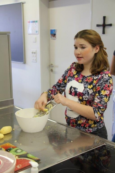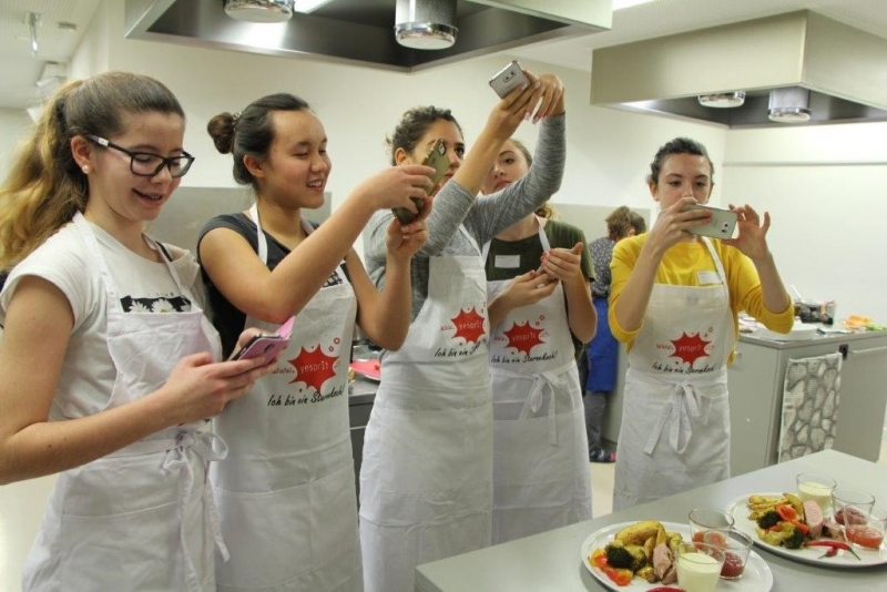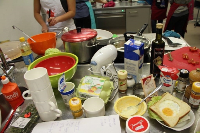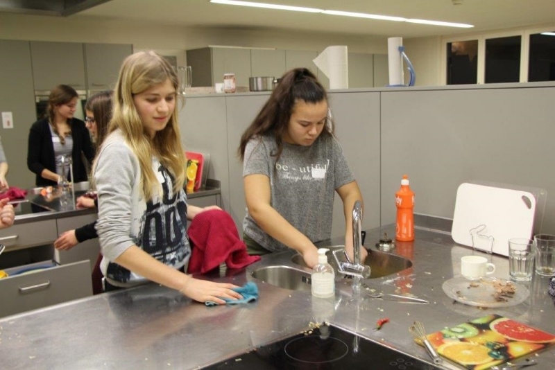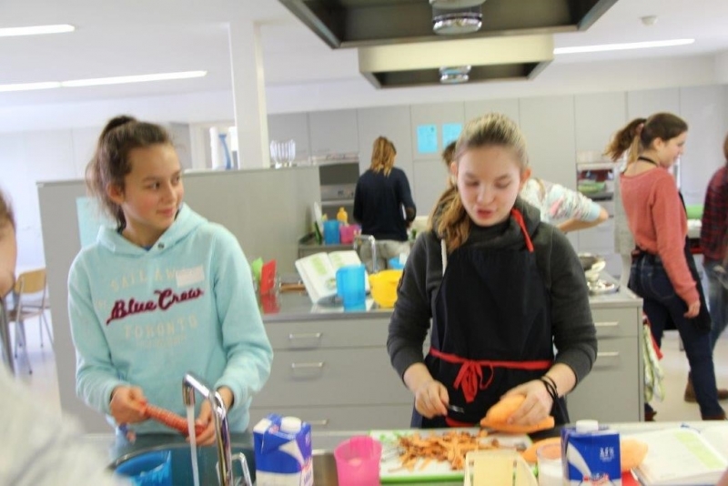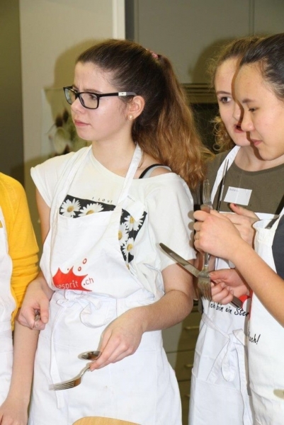 Der Auftrag war, mit einer Auswahl an zur Verfügung gestellten regional und saisonaler Lebensmittel ein Dreigangmenu zu kreieren. Während die einen noch am planen waren, begannen andere schon zu kochen. Die zur Verfügung gestellte Zeit reichte um in Ruhe den Auftrag zu erfüllen. Das emsige Treiben der Jungköchinnen in der Schulküche der Meitleflade erinnerte an einen Ameisenhaufen, weil jede wusste, was zu tun war und anpackte. Die meisten Handgriffe sassen schon sehr gut, als Joker stand ein Profikoch für Anfragen zur Verfügung und das Yesprit Team stand ebenfalls bereit.