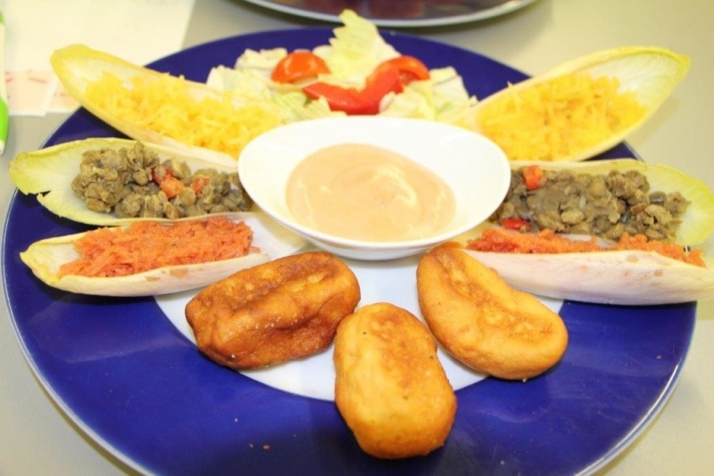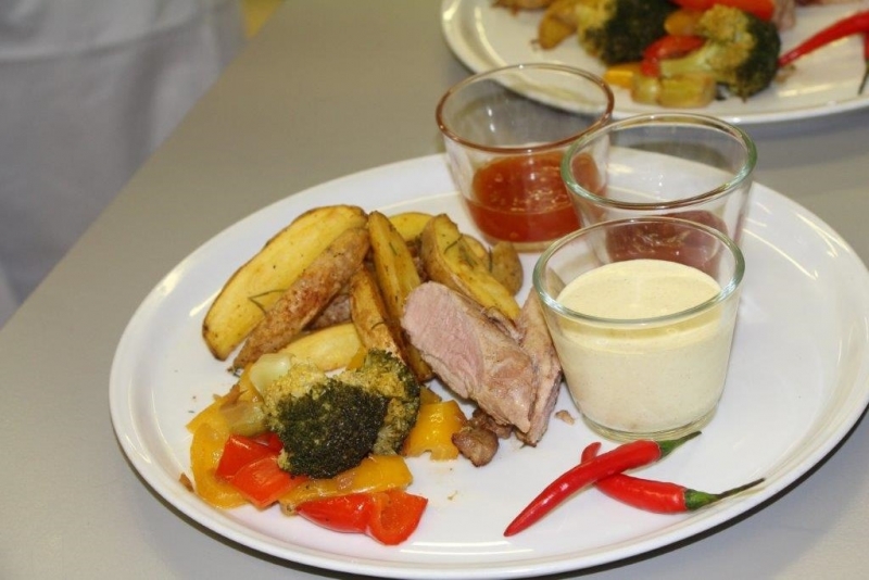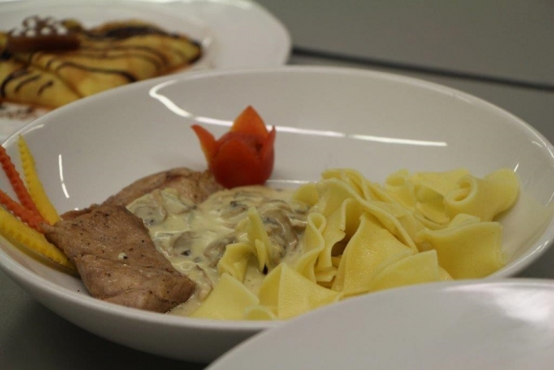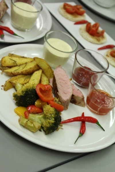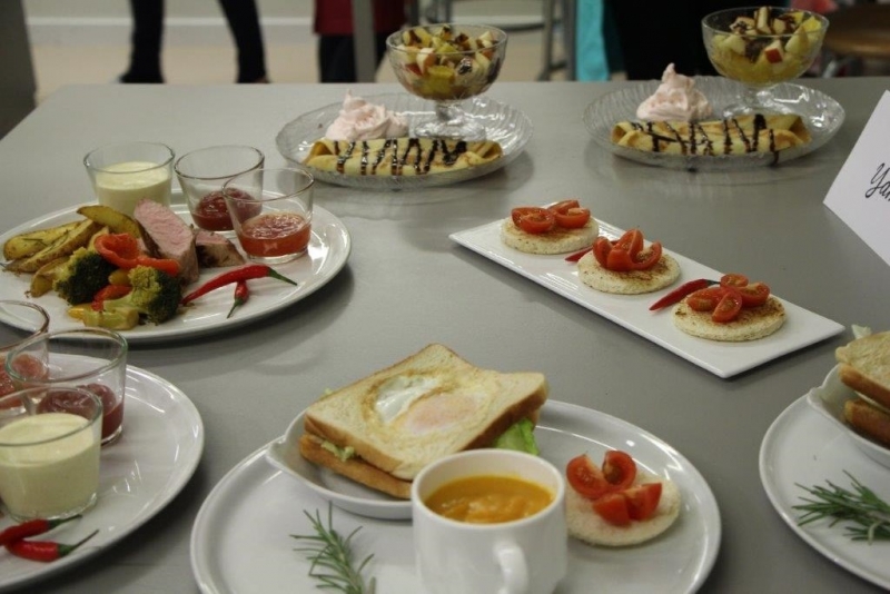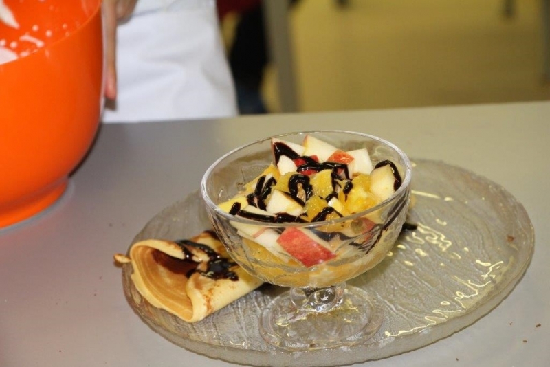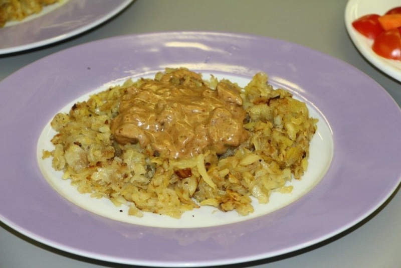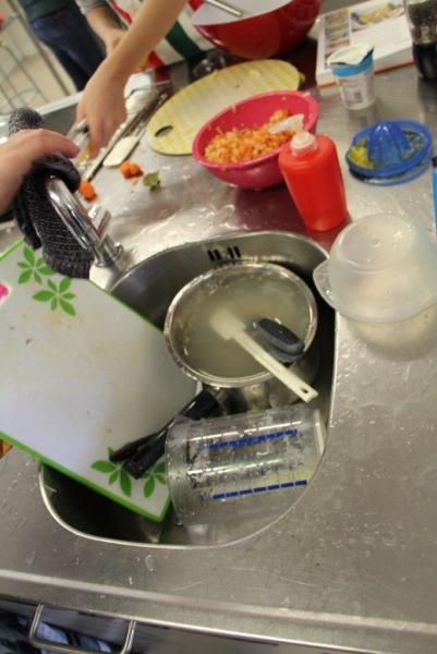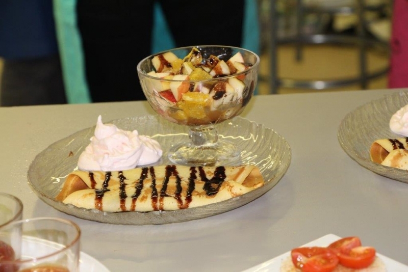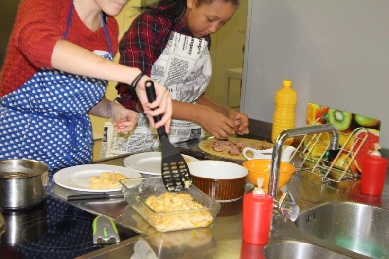 Der Auftrag war, mit einer Auswahl an zur Verfügung gestellten regional und saisonaler Lebensmittel ein Dreigangmenu zu kreieren. Während die einen noch am planen waren, begannen andere schon zu kochen. Die zur Verfügung gestellte Zeit reichte um in Ruhe den Auftrag zu erfüllen. Das emsige Treiben der Jungköchinnen in der Schulküche der Meitleflade erinnerte an einen Ameisenhaufen, weil jede wusste, was zu tun war und anpackte. Die meisten Handgriffe sassen schon sehr gut, als Joker stand ein Profikoch für Anfragen zur Verfügung und das Yesprit Team stand ebenfalls bereit.