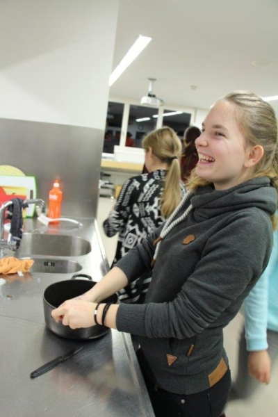 Es brutzelt und dampft, Dessertduft mischt sich mit dem Duft angebratenen Fleisches und noch immer bleiben die Jugendlichen ruhig am Kochen. Am Samstag, 23. Januar war wieder mal Kochduell angesagt. 8 Gruppen à ca. 5 Personen traten gegeneinander an und wetzten die Messer.