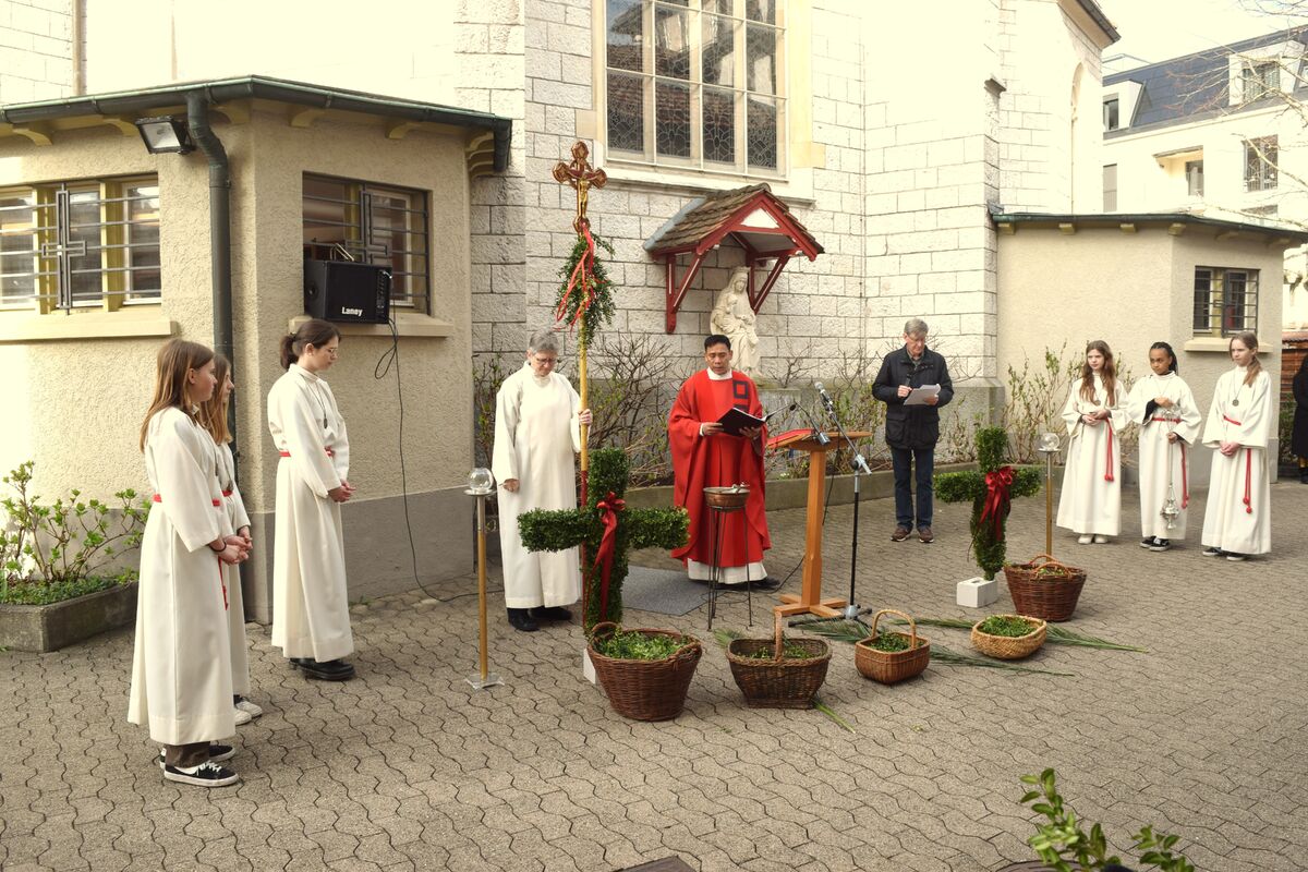 Die Heilige Woche ist eröffnet. Mit Palmzweigen und Gesang haben wir Jesus begrüsst und begleitet.