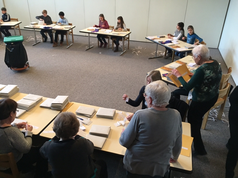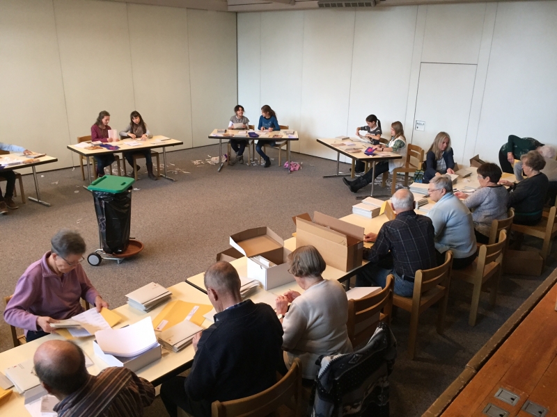 Über 50 Personen helfen jeweils in unserer Pfarrei, um die rund 2000 Kuverts zu verpacken, zu etikettieren und dann in alle katholischen Haushalte zu vertragen.