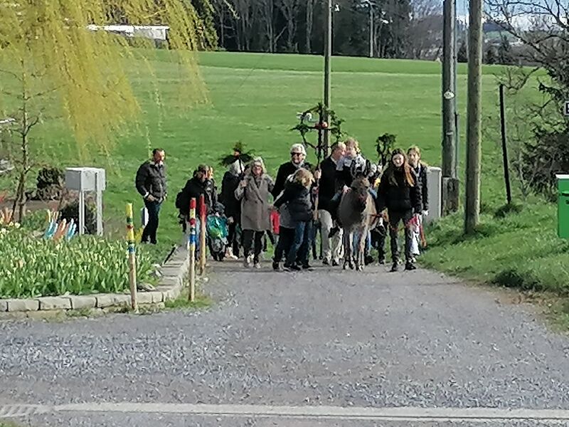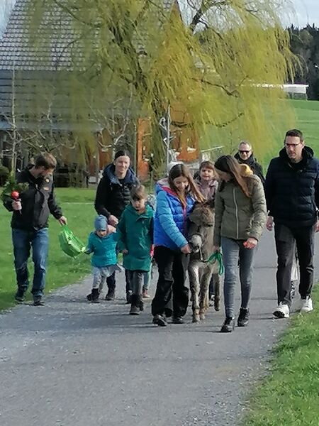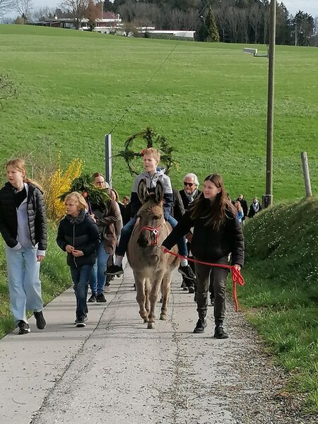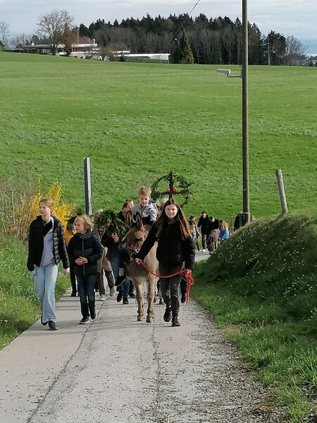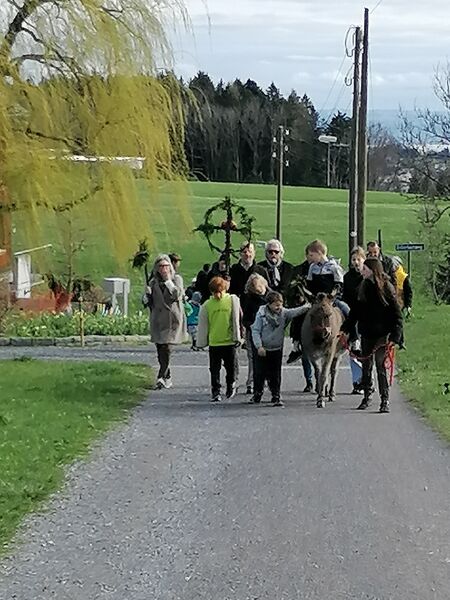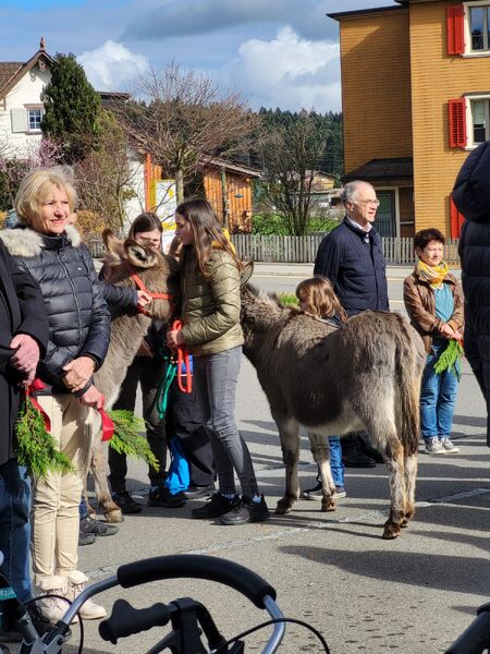 Miteinander führten wir die Esel zum Senevita Oberhalden, wo wir uns um 10.00 Uhr für die Palmweihe trafen.