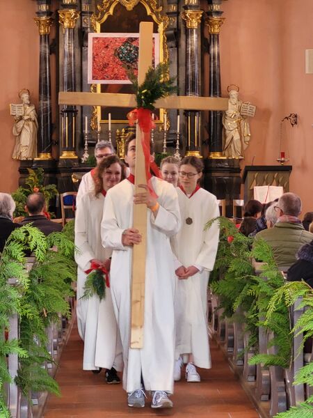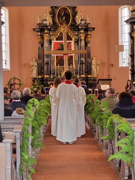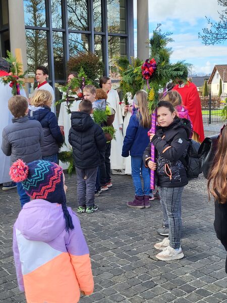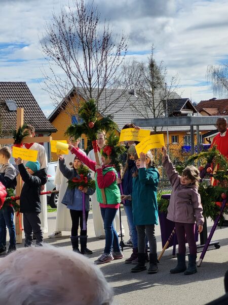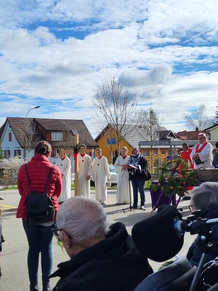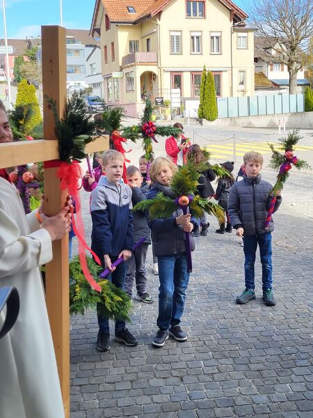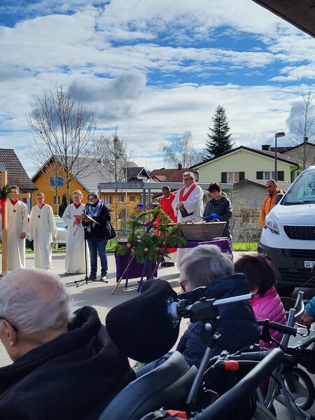 Nach der Palmweihe zogen wir mit den Eseln und den Palmen vom Senevita zur Kirche, wo wir gemeinsam den Gottesdienst feierten.