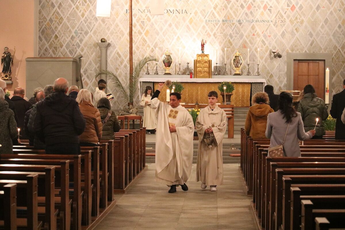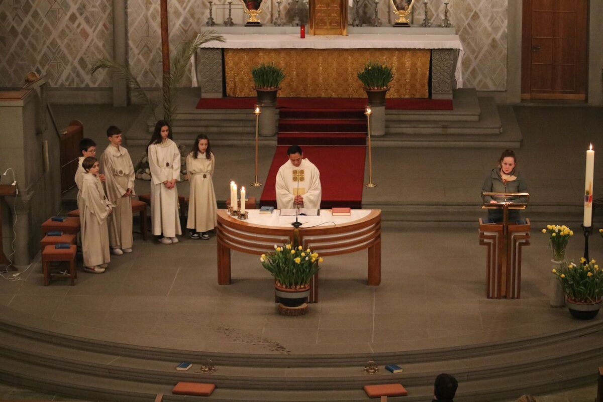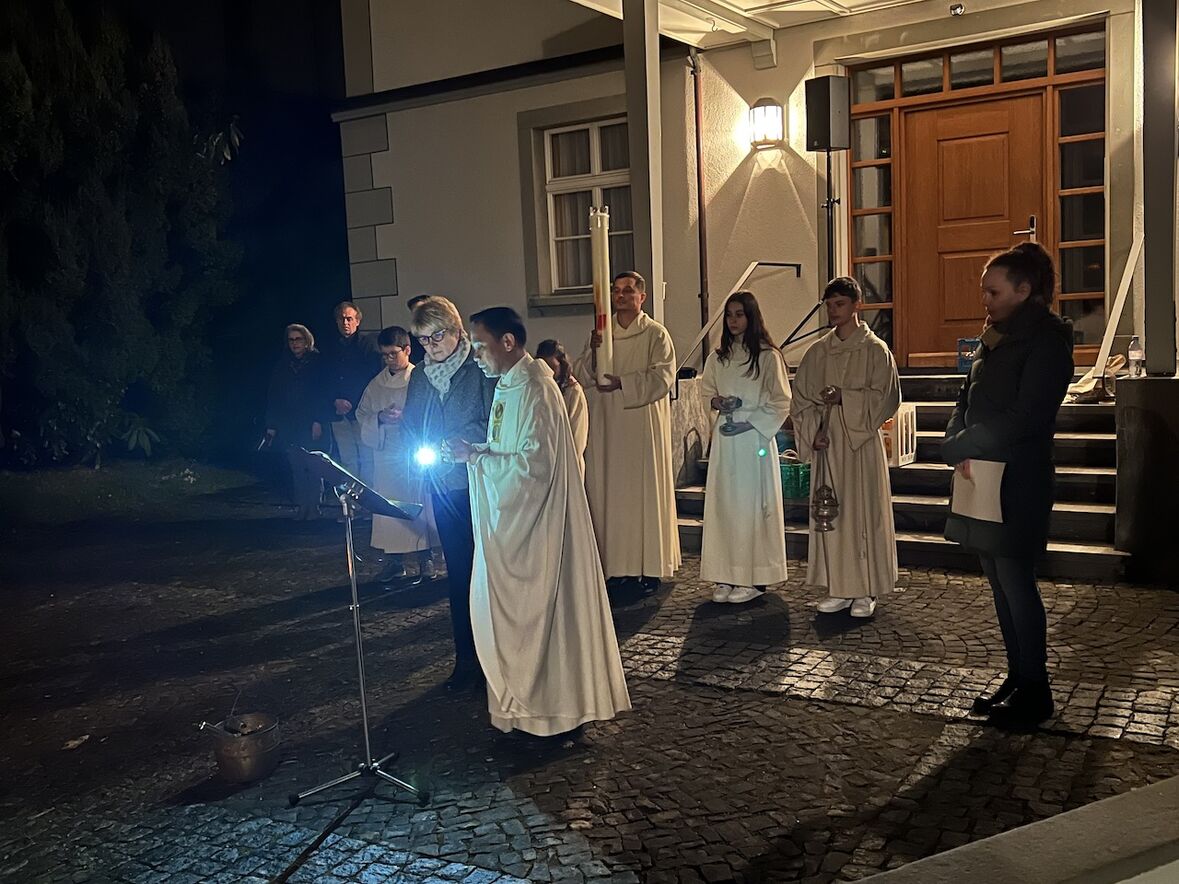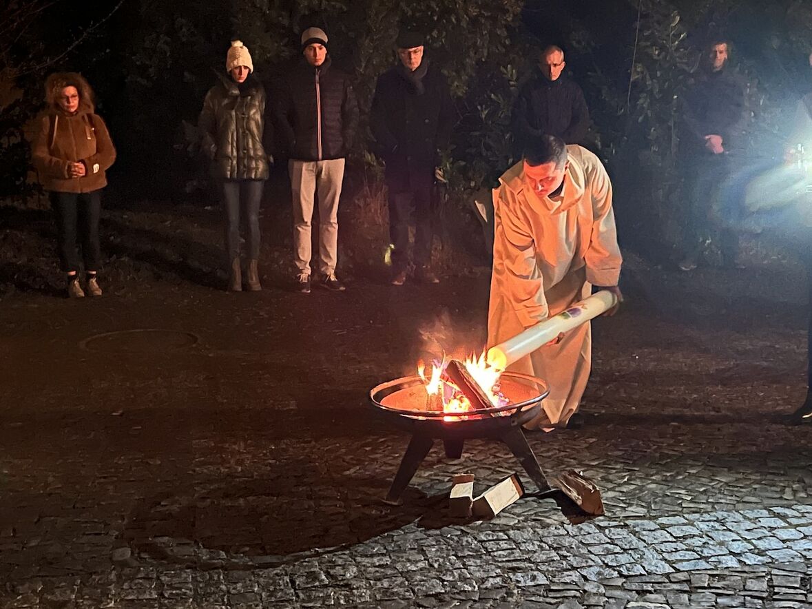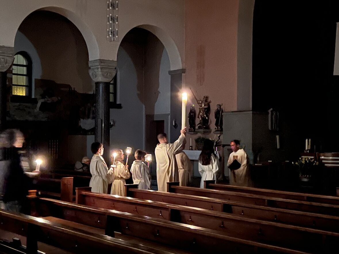 Das Licht der Osterkerze erhellte unsere Kirche und wir feierten gemeinsam die Auferstehung Jesu Christi von den Toten. Anschliessend genossen wir die Gemütlichkeit am Osterfeuer.