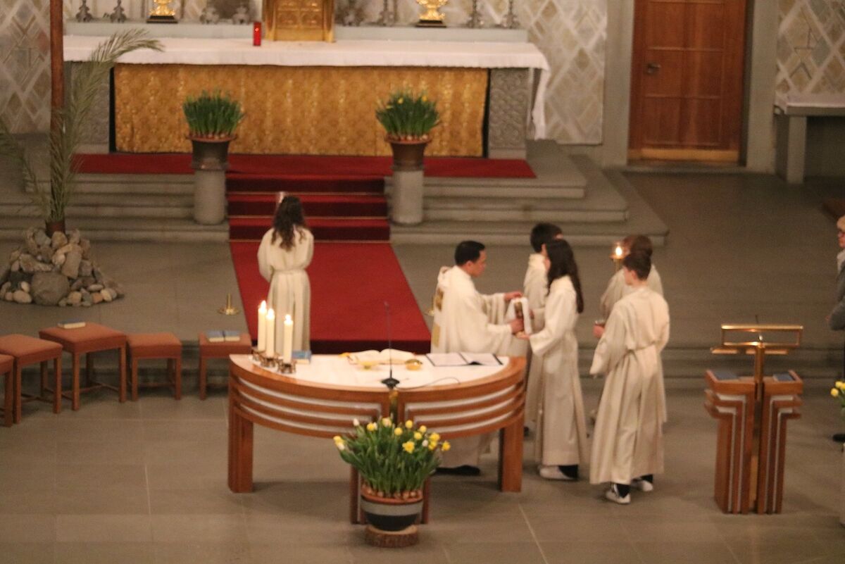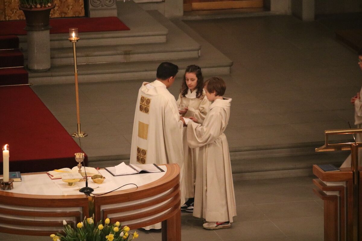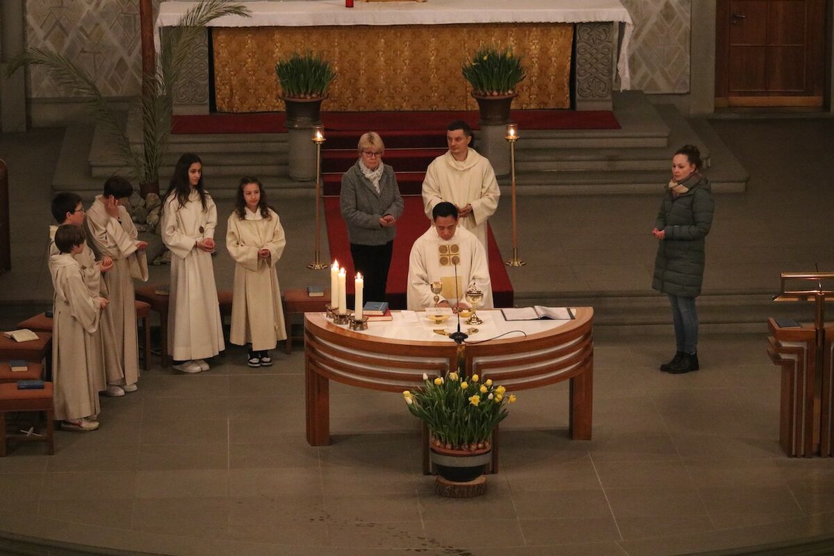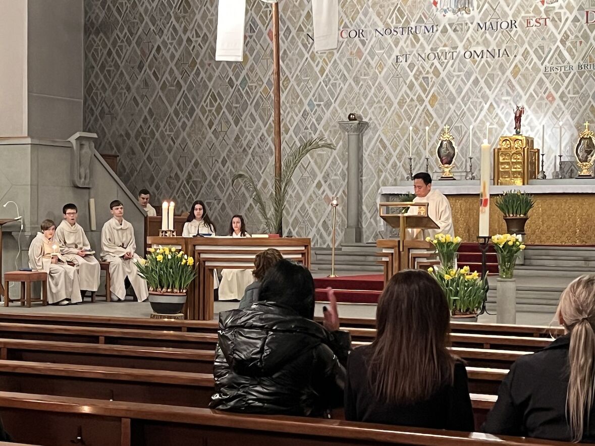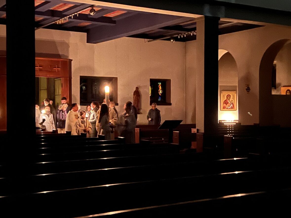Das Licht der Osterkerze erhellte unsere Kirche und wir feierten gemeinsam die Auferstehung Jesu Christi von den Toten. Anschliessend genossen wir die Gemütlichkeit am Osterfeuer.