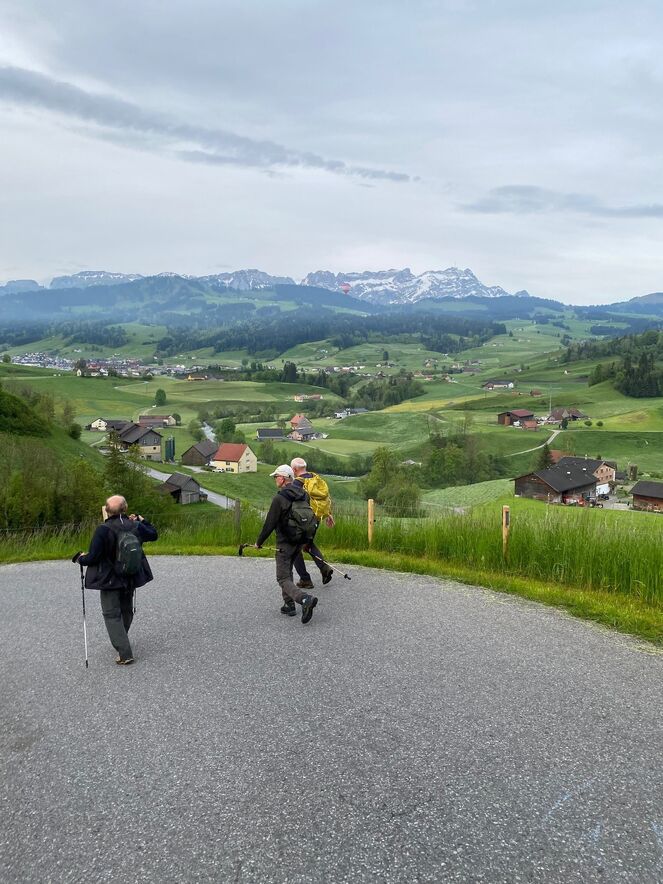 Durch ein paar Nebelfelder errreichten sie Appenzell im Sonnenschein und genossen dort einen feinen Kaffee. Weiter ging es über die Sonnenhalde in die Ahornkapelle.