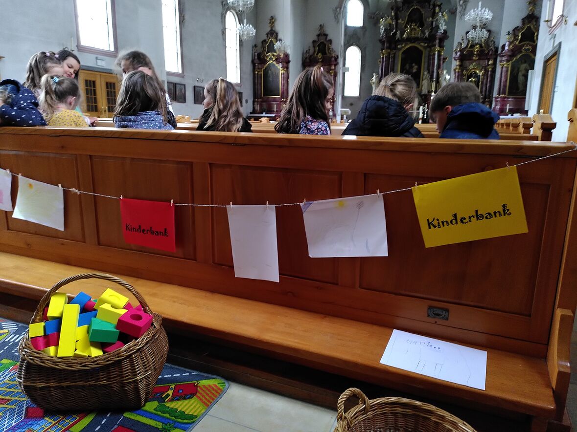 Die Kinder waren in der Spielecke in der Kirche beschäftigt.
