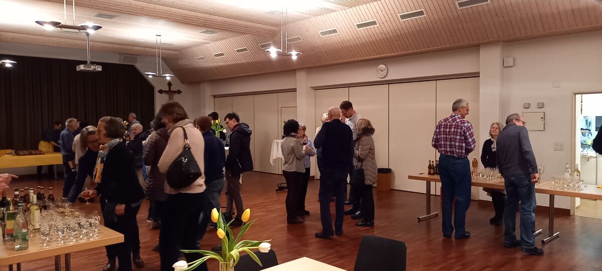 Das war auch in diesem Jahr so. Die Feier der Osternacht, die am Osterfeuer begonnen hat und in der Kirche mit einer Eucharistie und einem Licht- und Wasserritual, die an die Auferstehung Jesu erinnern, gefeiert wurde, fand im Pfarreiheim einen gemütlichen Abschluss. Der Pfarreirat organisiert jeweils das Fleisch und alles rund um das Essen des Osterlamms und auch für Getränke und gute Stimmung war gesorgt.