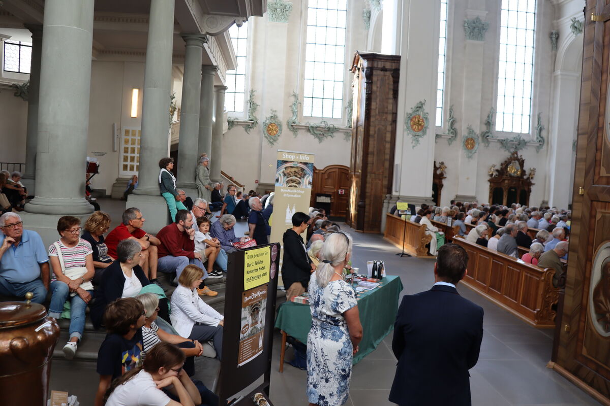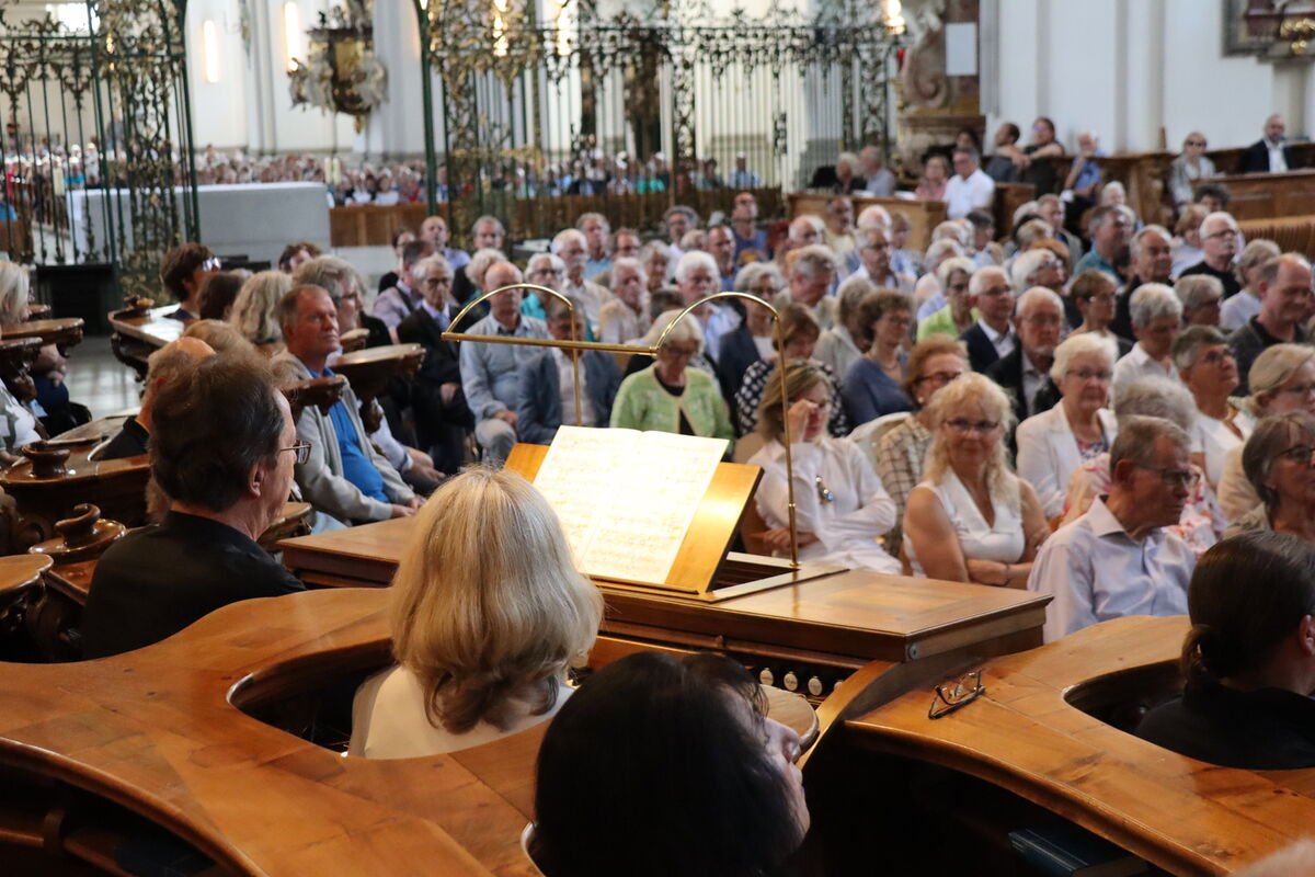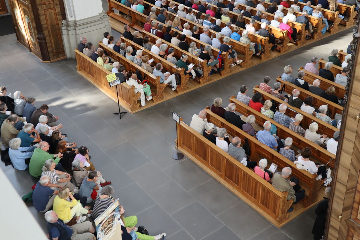 Willibald Guggenmos zog - im wahrsten Sinne des Wortes – nochmals alle Register. Es erklang ein grossartiges Konzert mit verschiedenen Werken von Johannes Brahms bis Max Reger an der Chor- sowie an der Hauptorgel. Wie bei jedem Konzert stand ihm seine Ehefrau Maria mit Blättern und Registrieren unterstützend zur Seite. Der Künstler liess die Instrumente nochmals erbeben, aber auch feine, melancholische Klänge als allerletztes Stück erklingen.