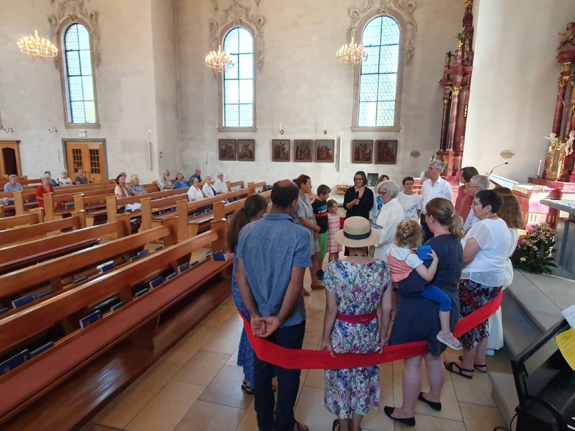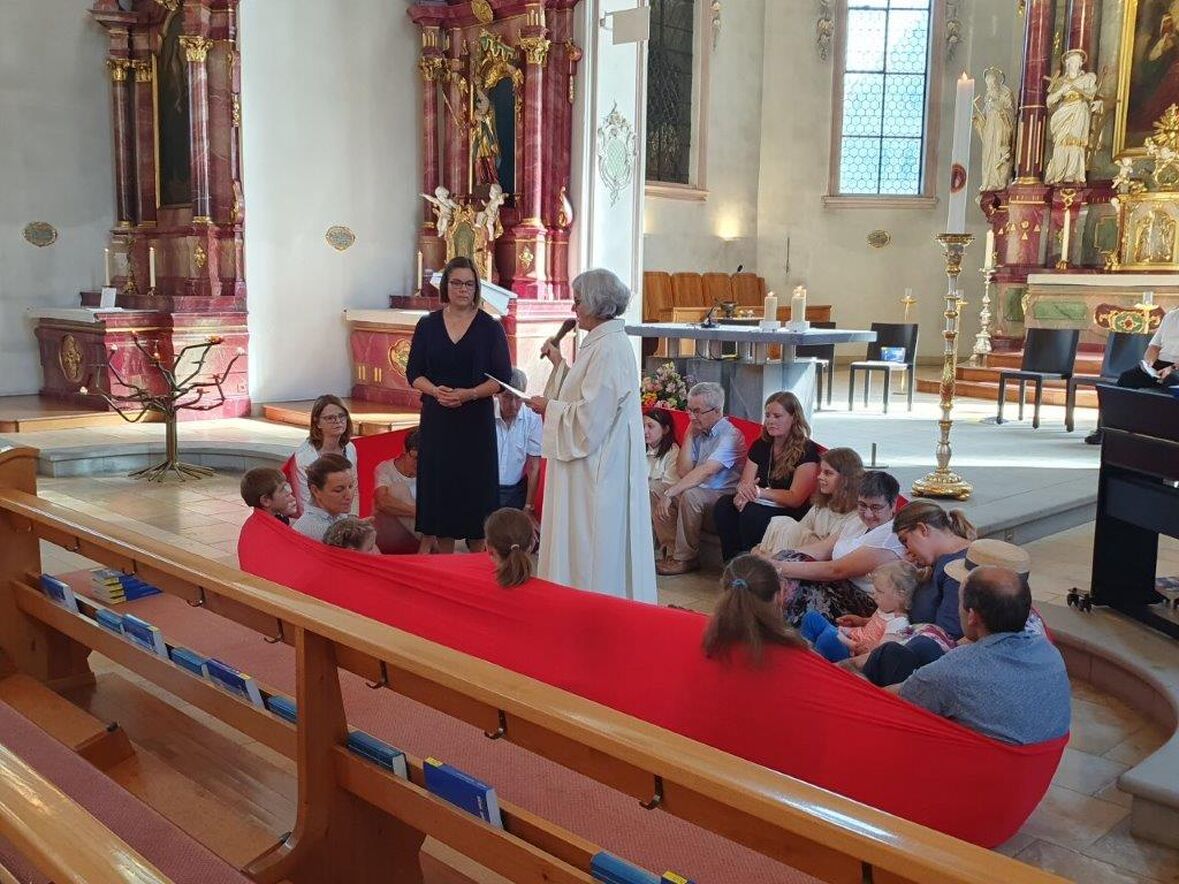 ... von vielen Menschen der Pfarrei, die mit in den Tuchkreis steigen.