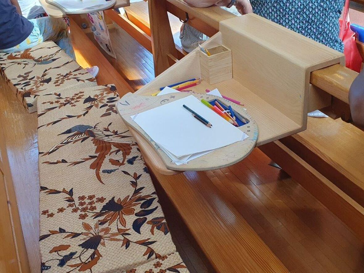 Gleichzeitig wurde die Kinderkirchenbank eingeweiht - und gleich "bespielt".