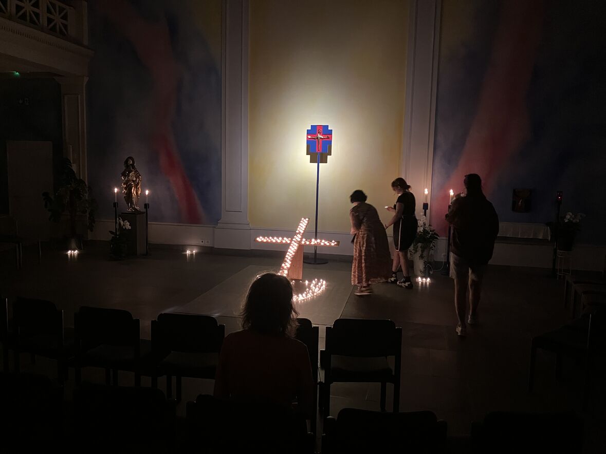 Der Freitag und Samstag nach den Ferien standen wieder einmal ganz im Zeichen des St.Galler Festes. Und natürlich dürfen bei einem so wichtigen Event wie diesem auch die Kirchen nicht fehlen – wie die Jahre zuvor mit dem bewerten Format «Ort der Stille» in der Schutzengelkapelle. Es ist bemerkenswert, miterleben zu dürfen, wie viele Menschen diesen Ort der Stille im Rahmen eines so bunten uns lauten Festes nutzen. Ein Kerzli anzünden und einen kurzen oder längeren Moment in der nur von Kerzen erleuchteten Schutzengelkapelle verweilen wird als wohltuend und heilsam erlebt. An der KostBar und am Eingang der Schutzengelkapelle entstanden aber auch spannende und berührende Begegnungen und Gespräche. 15 engagierte Freiwillige verteilten an den 2 Tagen 957 Kerzli. 736 Personen besuchten den «Ort der Stille». Wir danken allen Freiwilligen ganz herzlich für ihren Einsatz.