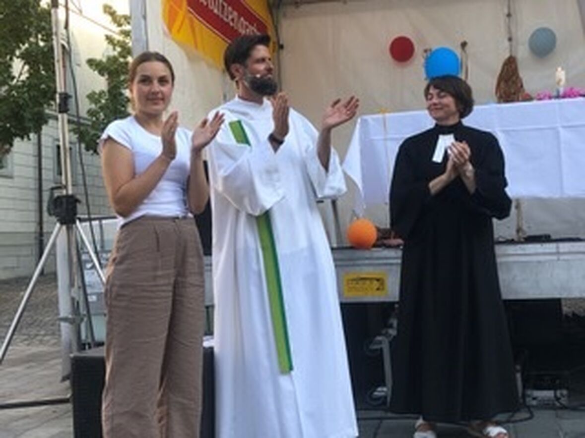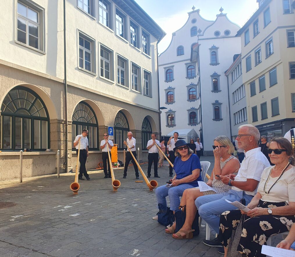 Ein ermutigendes Zeichen ist es immer wieder, dass die Organisator:innen des St.Galler Festes jedes Jahr neu einen Gottesdienst einplanen. Wie die Jahre zuvor so haben wir Kirchen auch im 2023 gemeinsam mit «dross und dree» aus Waldstadt und der Alphonrformation «Echo vom Spannort» aus Engelberg OW diesen Gottesdienst gestaltet. Pfrn. Kathrin Bolt, Elina Hitz und Matthias Wenk haben sich gemeinsam mit den engagierten Mitfeiernden der Frage gestellt: Was macht ein Fest zum Fest?!» Es liegt auf der Hand: Wenn sich niemand beteiligt, dann gibt es kein Fest! Und so wurden alle Mitfeiernden zum Mitmachen motiviert – es gab welche, die sich um das leibliche Wohl gekümmert haben, es gab Sänger:innen und Tänzerinnen und welche, die für die Deko zuständig waren. Und so wurde dieser Gottesdienst zu einem wirklichen Fest! Dank der vielen Engagierten!