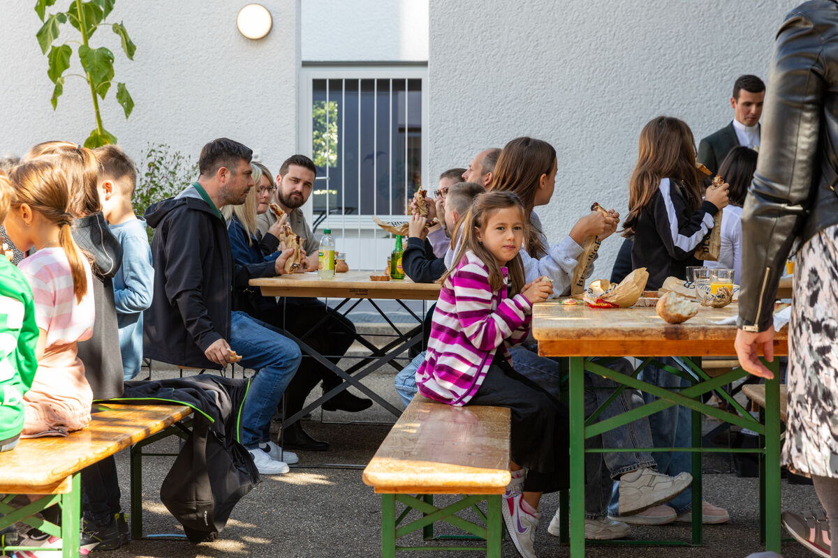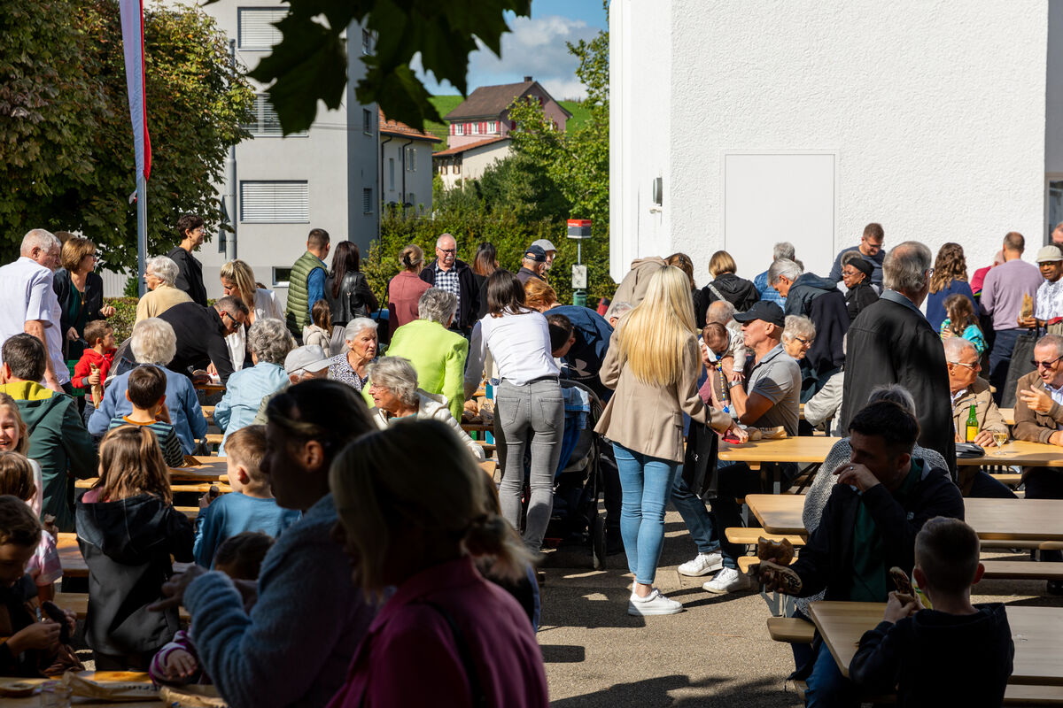 Nach dem Gottesdienst lud der Pfarreirat zum Festwirtschaft ein, wo es Wurst und Brot und Vegi gab. Der fleissige Pfarreirat sorgte mit weiteren Helferinnen und Helfer für das leibliche Wohl der zahlreichen anwesenden Familien mit Kindern. Das wunderschöne Wetter trug dazu bei, dass man gut draussen sitzen konnte und verschiedene Spielangebote für Kinder durchführen konnte.