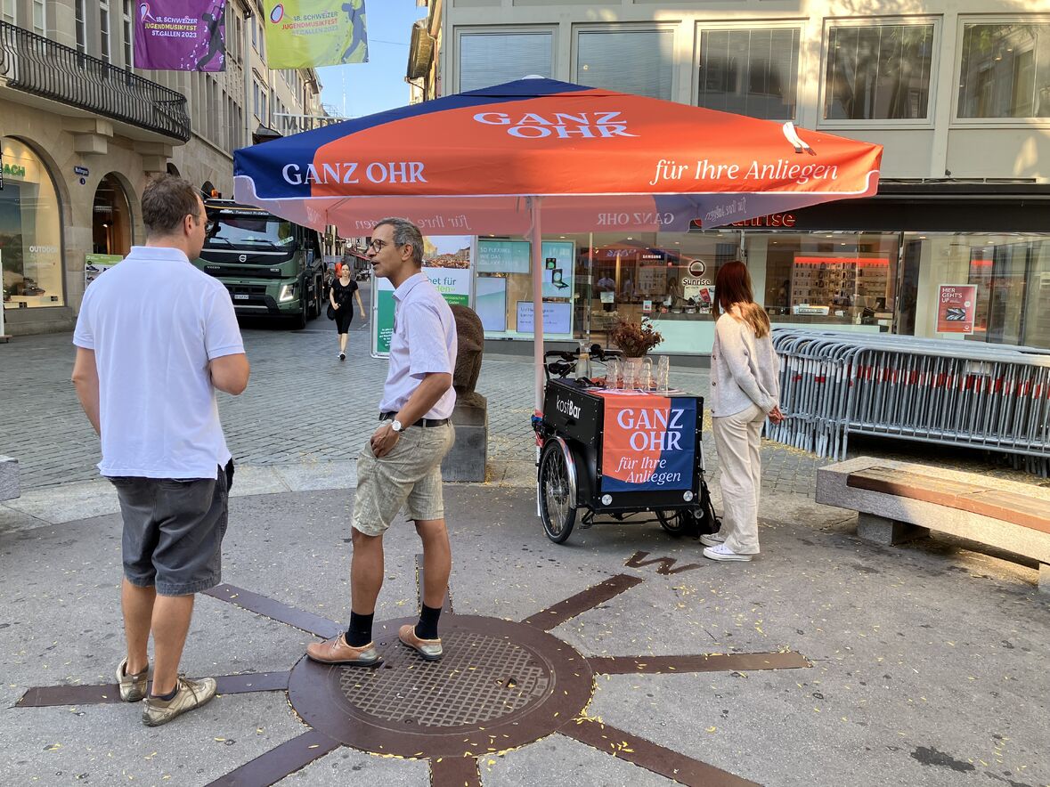 «Ganz Ohr – für ihre Anliegen», unter diesem Titel bieten Seelsorgende der katholischen Kirche im Lebensraum St. Gallen und der reformieren Gemeinden Straubenzell, Tablat und Centrum jeweils donnerstags eine Möglichkeit, unkompliziert ins Gespräch zu kommen. «Ganz Ohr» findet jeden Donnerstag von 16.00 bis 18.00 Uhr wieder in und vor der Kirche St. Laurenzen statt.