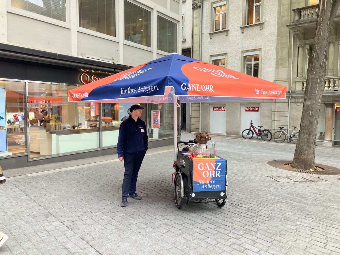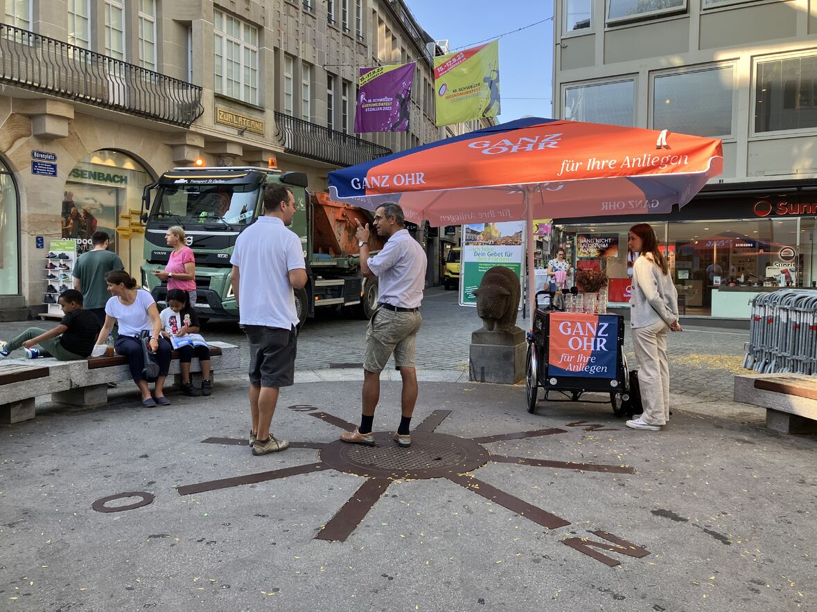 Als Erweiterung des Seelsorgeangebotes ist das ökumenische Team von GANZ OHR bis Oktober auch auf dem Bauernmarkt am Freitag präsent. Mit unserem fahrbaren «Stand» sind wir an verschiedenen Stellen zu finden sein und freuen uns, mit Ihnen ins Gespräch zu kommen - was auch an den letzten Freitagen auch schon rege genutzt wurde. Am Freitag, 29. September, sind wir ab 9 Uhr zum letzten Mal in diesem Jahr mit Ganz Ohr auf der Gass - diesmal am Bärenplatz!