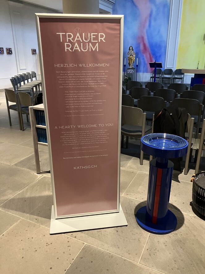 Viele nutzten die Gelegenheit auch, die Schutzengelkapelle, die sonst ja nicht geöffnet ist, als Raum der Stille und Einkehr zu geniessen. "Es tut gut, einen Raum für die individuelle Trauer zur Verfügung zu haben", haben uns etliche Personen zurückgemeldet. Viele Zeichen der Dankbarkeit für diese Möglichkeit gingen bei uns ein, was uns dazu ermutigt, auch im 2024 wieder einen TrauerRaum anzubieten.
