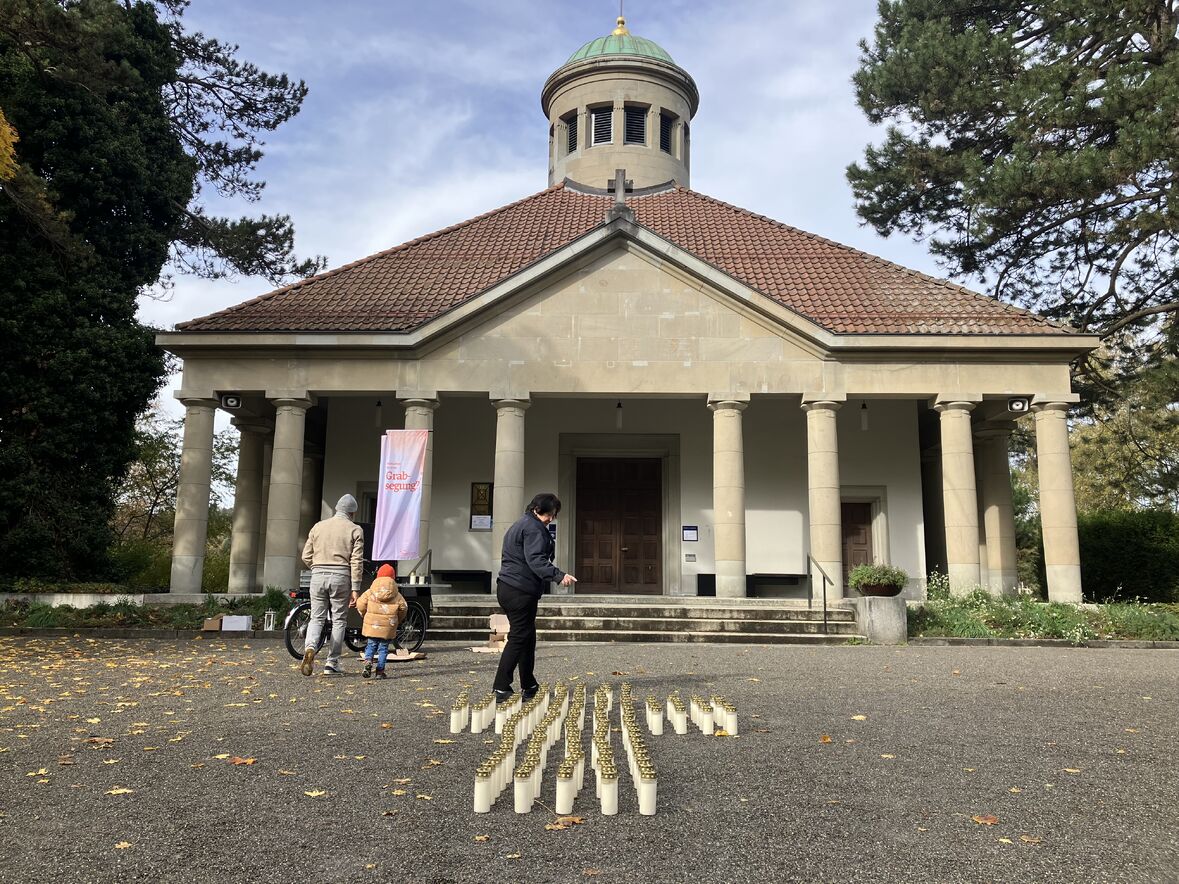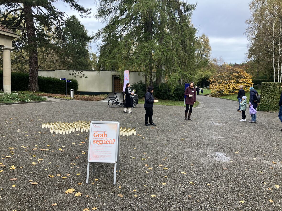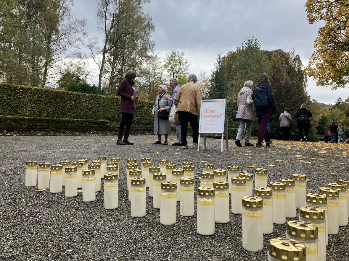 Gleichzeitig waren auch Seelsorgende und Freiwillige anwesend, um auf Wunsch Menschen ans Grab zu begleiten, um dieses zu segnen. Das Angebot wurde gut genutzt und dankbar angenommen. Rund 150 Kerzen und Weihwasserfläschchen konnten so abgegeben werden.