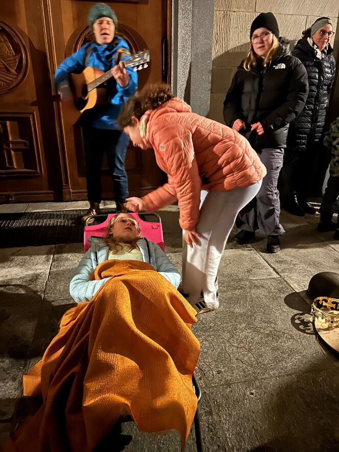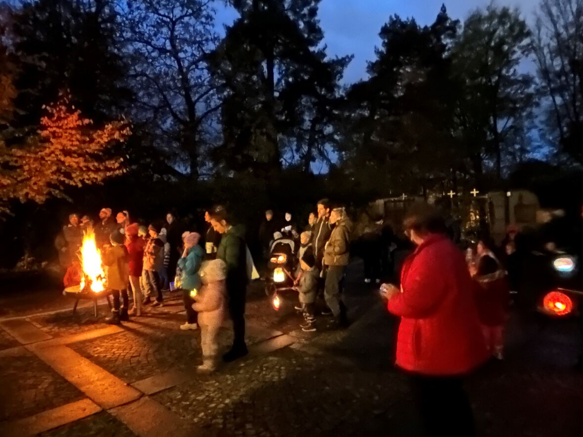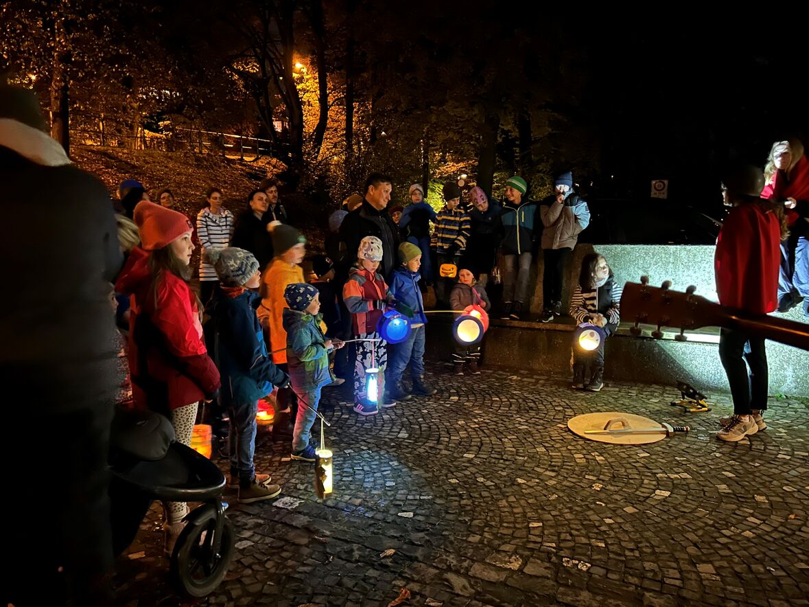 Bei regnerischem Wetter lauschten wir an verschiedenen Stationen unseres Umzuges der Geschichte des St. Martin, anschliessend wärmten wir uns am Feuer mit Punsch, Suppe und Wienerli.
