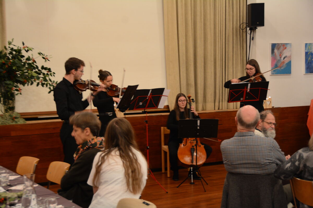 Ein Quartett jugendlicher Musiker/-innen spielt auf.