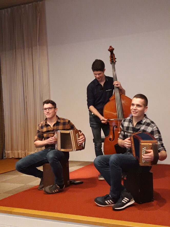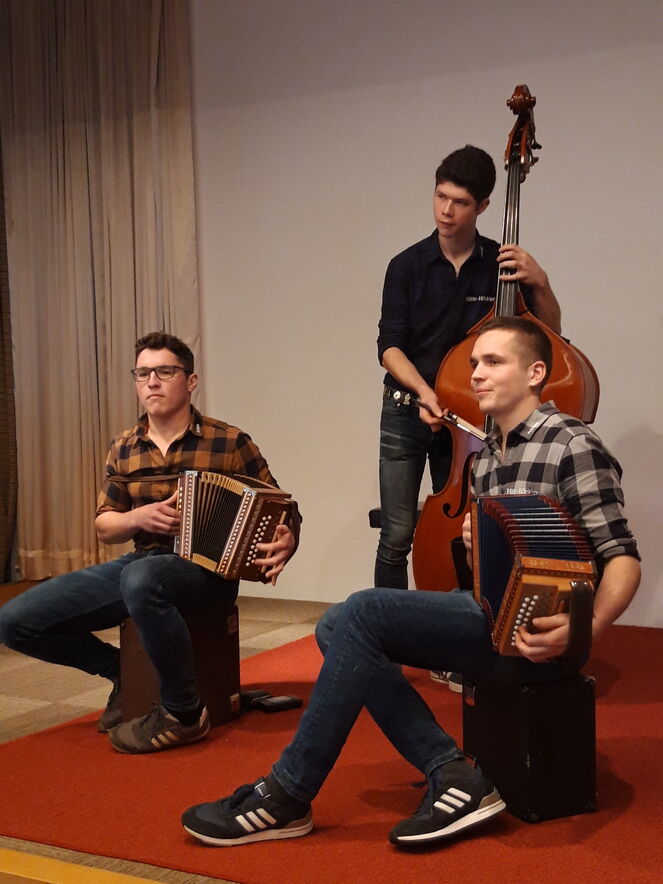 Am Sonntag 19. November hat der Pfarreirat nach dem Gottesdienst zum traditionellen Pfarreizmittag im Pfarreiheim eingeladen - und viele sind der Einladung gerne gefolgt. Bei einem feinen Zmittag und bester musikalischer Unterhaltung durch die junge Volksmusikformation Hütte-Höckler wurden alle bestens unterhalten. Natürlich durften auch die Informationen aus dem Pfarreirat nicht fehlen; gespannt wurde zugehört, was die Präsidentin Christina Wäger und Iréne Müggler zu berichten wussten. Die Pfarreibeauftrage Brigitta Schmid fand treffende Worte zum Abschluss, der dann aber mit einem feinen Dessert weiter hinausgeschoben werden konnte.