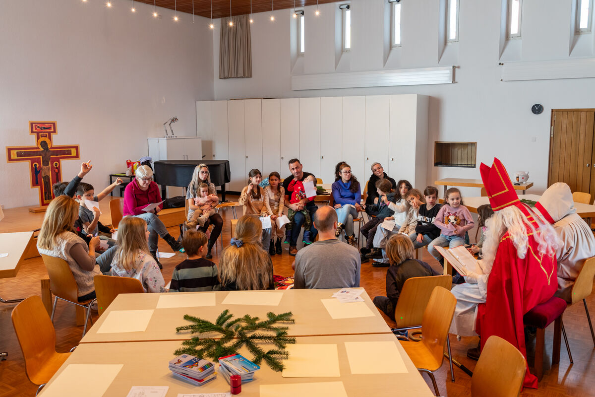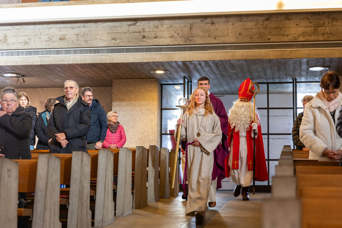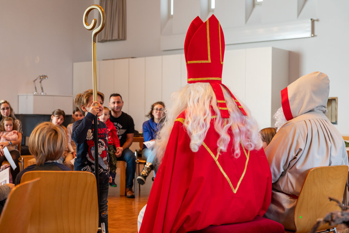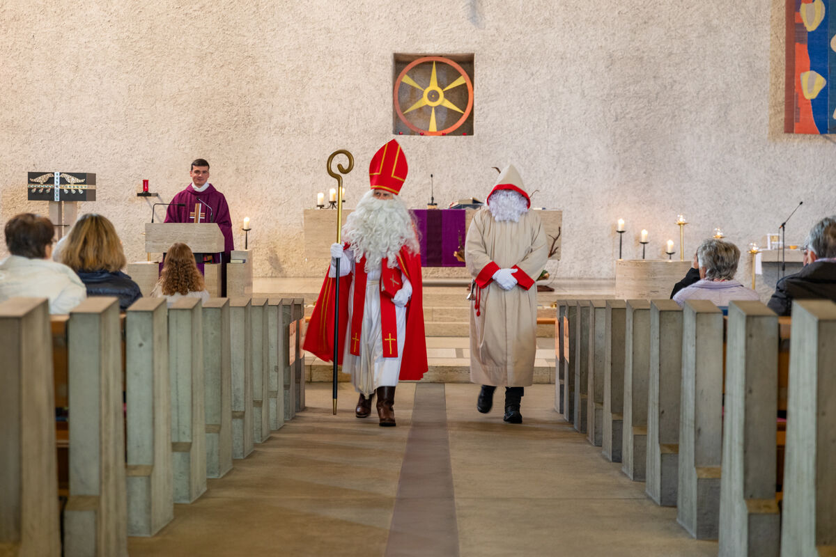 Am 2. Adventssonntag durften wir im Familiengottesdienst den hl. Nikolaus und seinen Begleiter Schmutzli willkommen heissen. Nach einem Begrüssungswort blieb er noch eine Weile im Gottesdienst, bevor er dann zusammen mit Schmutzli ins Pfarreiheim rübergegangen ist und ihn die Kinder voller Freude erwarteten.