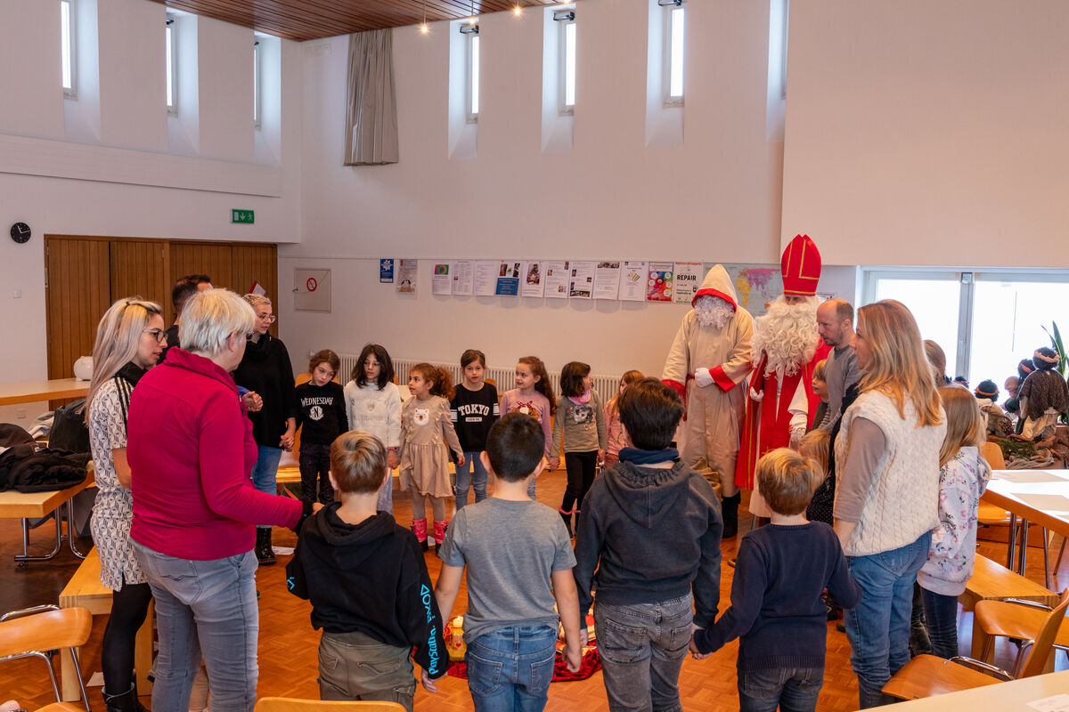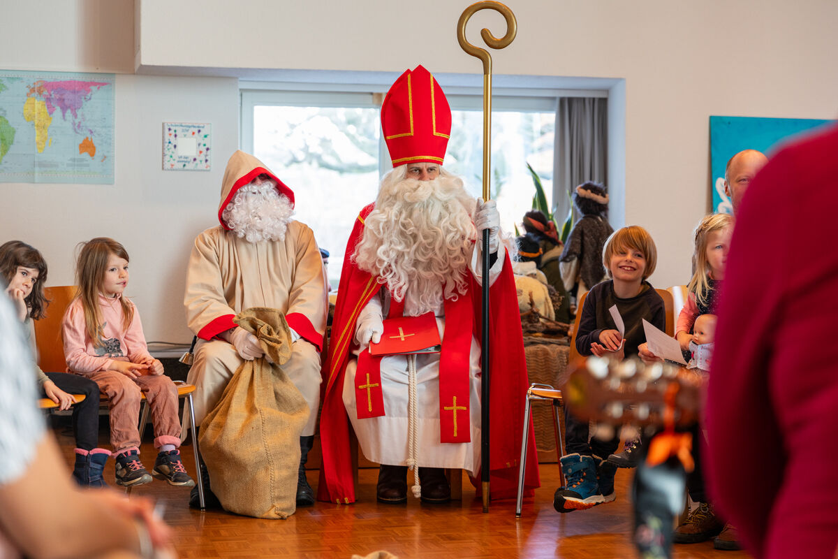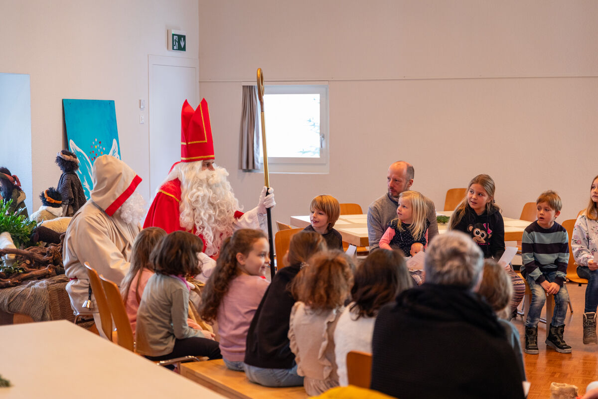 Dort erzählte ihnen der hl. Nikolaus, wer er ist und was er den ganzen Tag tut. Mit Pia Zweili an der Gitarre wurden noch ein paar Nikolaus-Lieder gesungen. Am Schluss bekamen alle Kinder einen Chlaussack geschenkt.