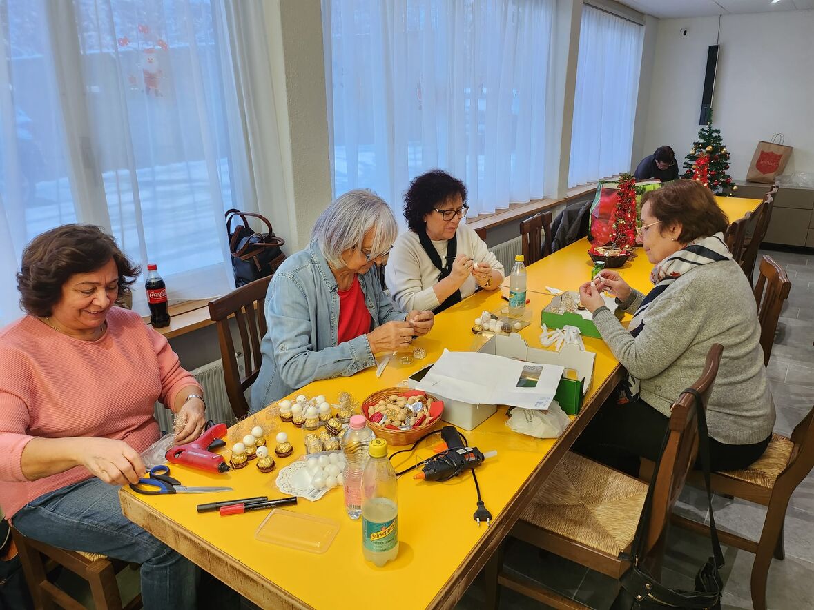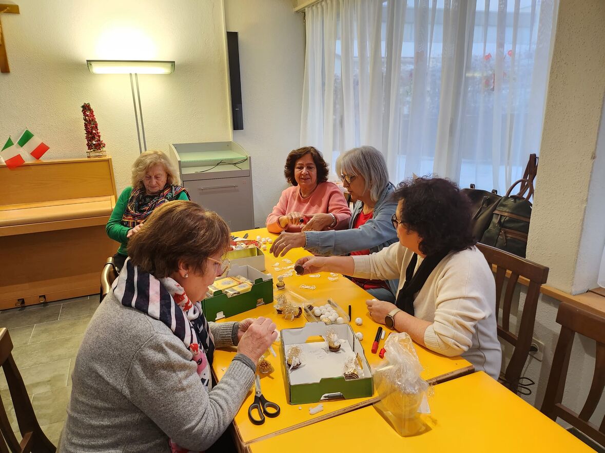 Gli Amici del Tempo Libero di San Gallo alle prese con la preparazione dei regalini per la vendita di beneficenza di Avvento