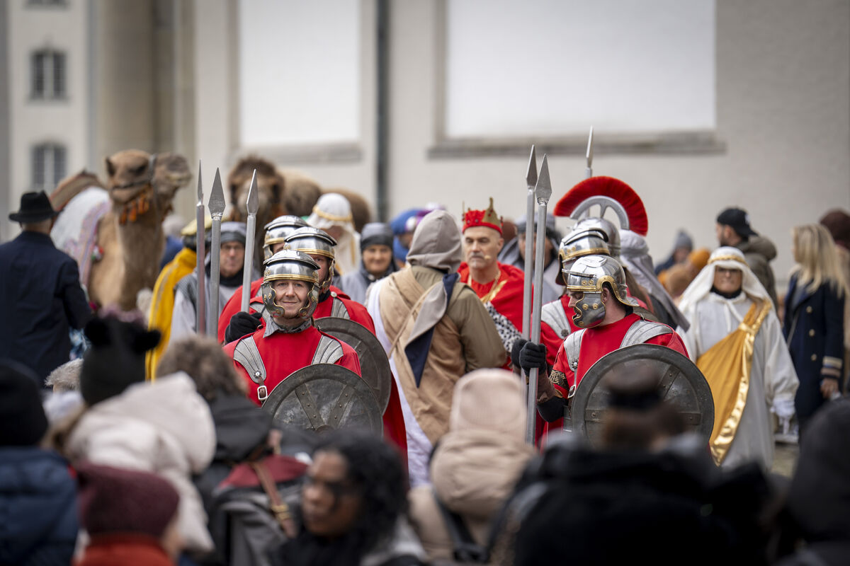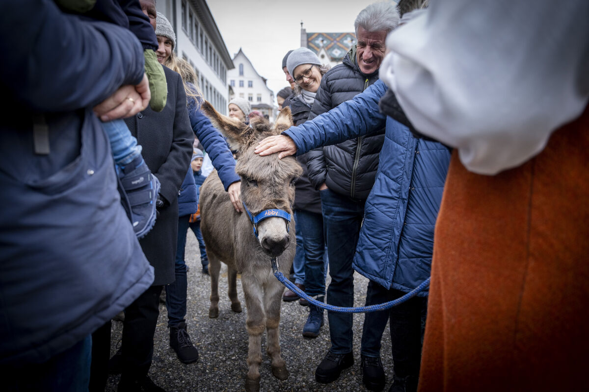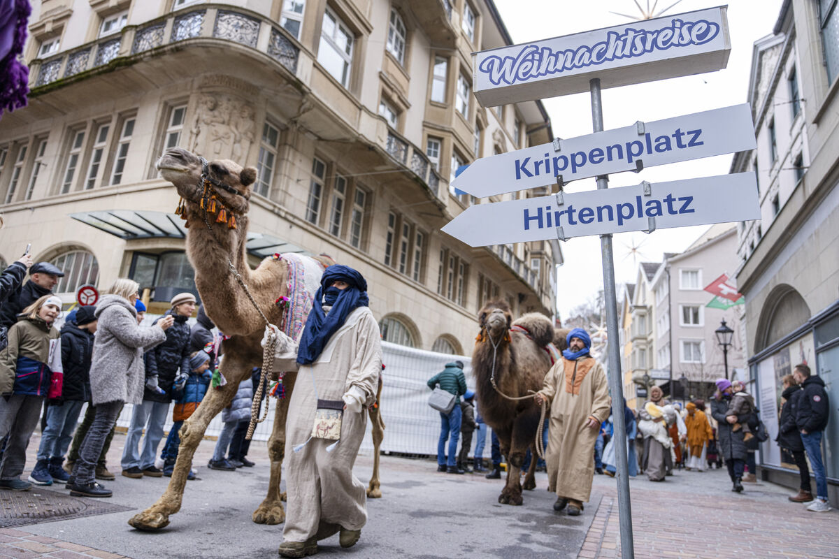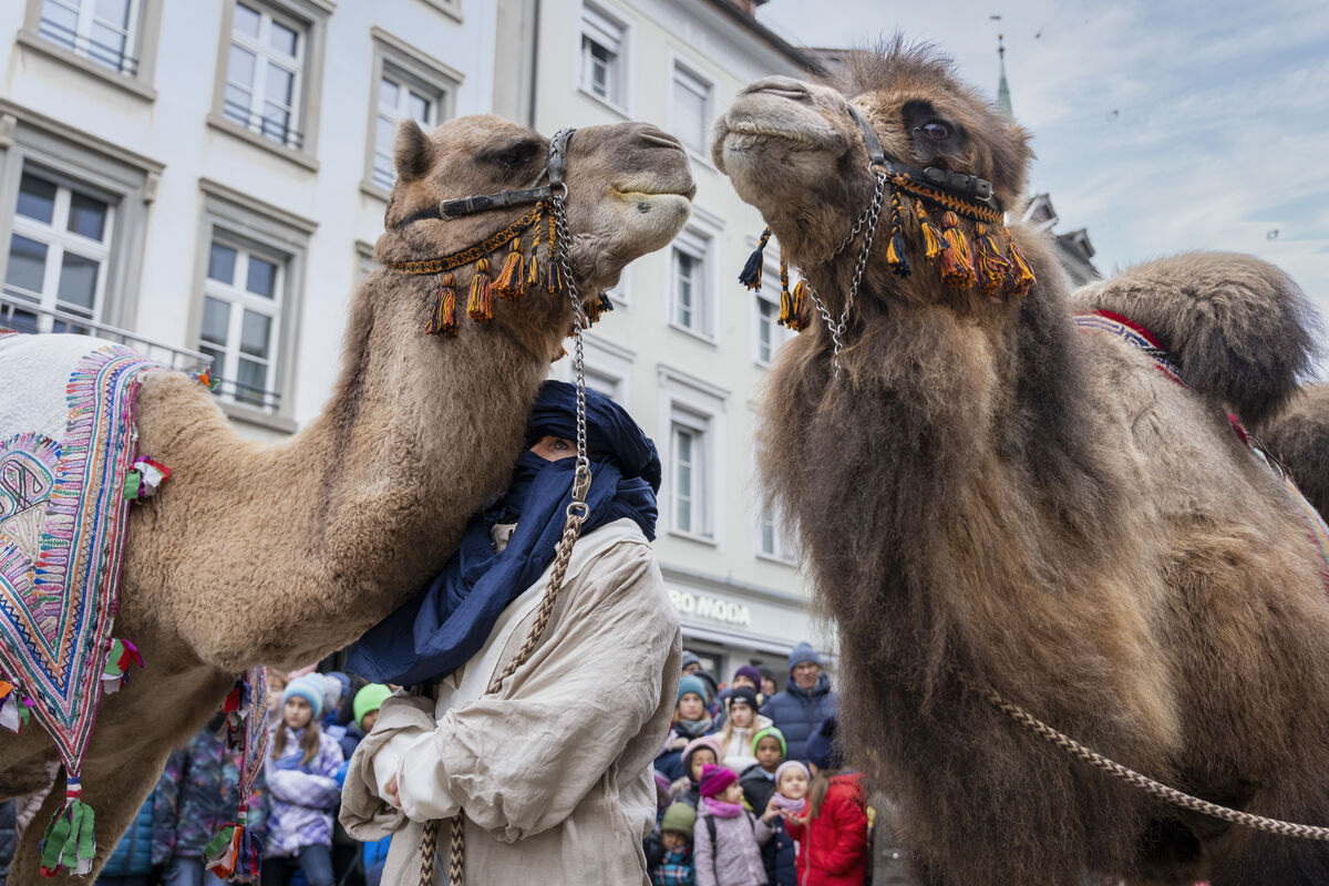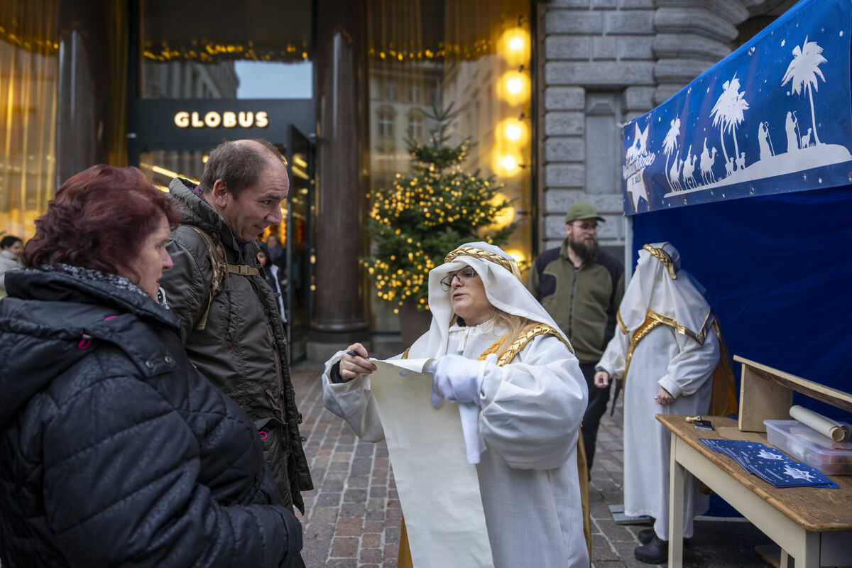 Bei gutem Wetter und vor grossem Publikum ist an drei Standorten in der St. Galler Innenstadt die Weihnachtsgeschichte aufgeführt werden.
