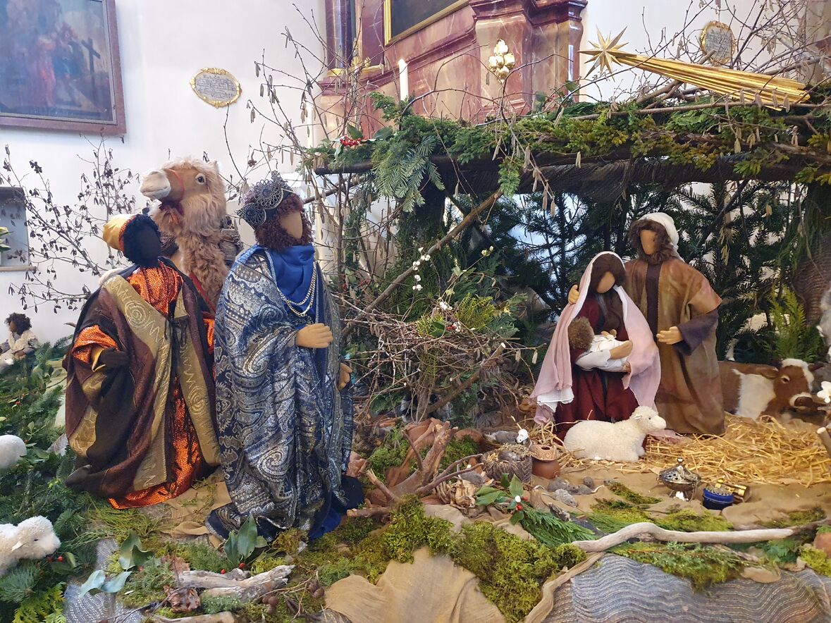 Nun sind sie bei der Krippe angekommen, die Sternsinger.