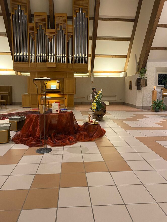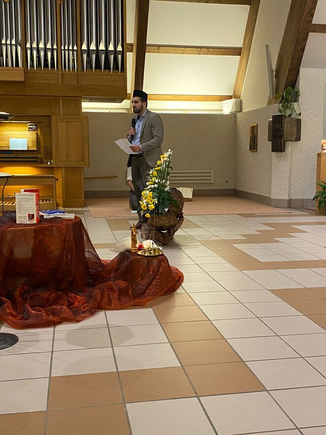 Das heutige Interreligiöse Gebet stand unter dem Motto "Verantwortung für ein gutes Miteinander". Die Idee dazu entsprang der Erfahrung, wie wertvoll und wichtig das gemeinsame Interreligiöse Gebet ist - für unsere Gesellschaft und in einer Welt, die den Frieden so nötig hat. Es ist immer auch ein Gebet für den Frieden, wenn die verschiedenen Religionen in der Haldenkirche zusammenkommen - es ist Friedensarbeit. Und es ist immer auch eine Selbstverpflichtung der einzelnen Glaubenden, für ein gutes und friedvolles Miteinander Verantwortung zu tragen. Wer beim Interreligiösen Gebet mitfeiert, der und die steht genau dafür ein.