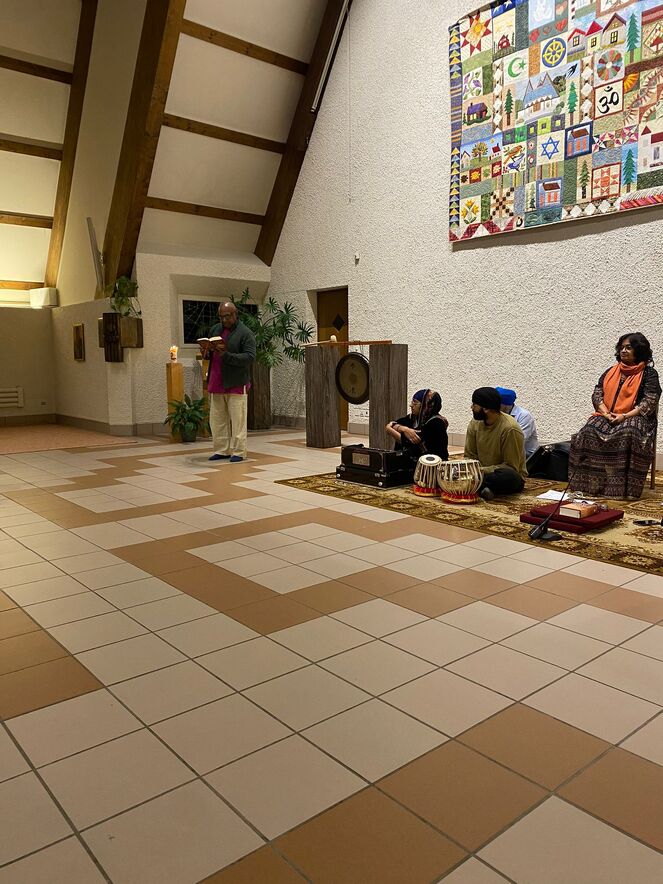 Am heutigen Samstag-Abend haben sich wieder einmal Vertreter:innen verschiedener Religionen in der Haldenkirche zum Interreligiösen Gebet getroffen. Sikhs, Hindus, Muslime und Christ:innen haben miteinander gebeten und sich durch das Gebet der jeweils anderen Religionen bereichern lassen.