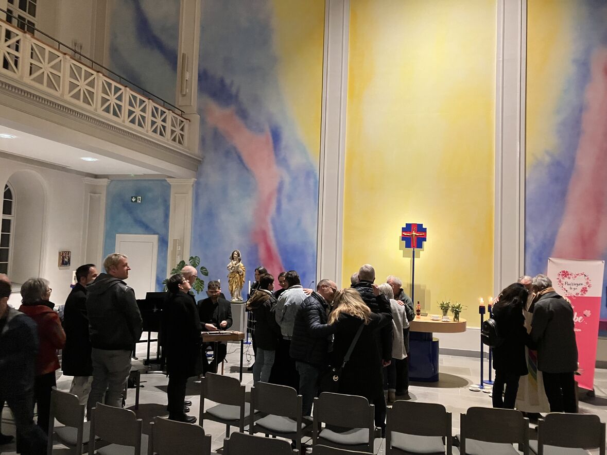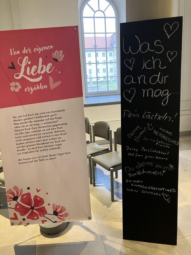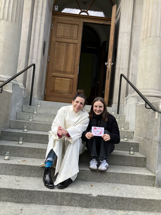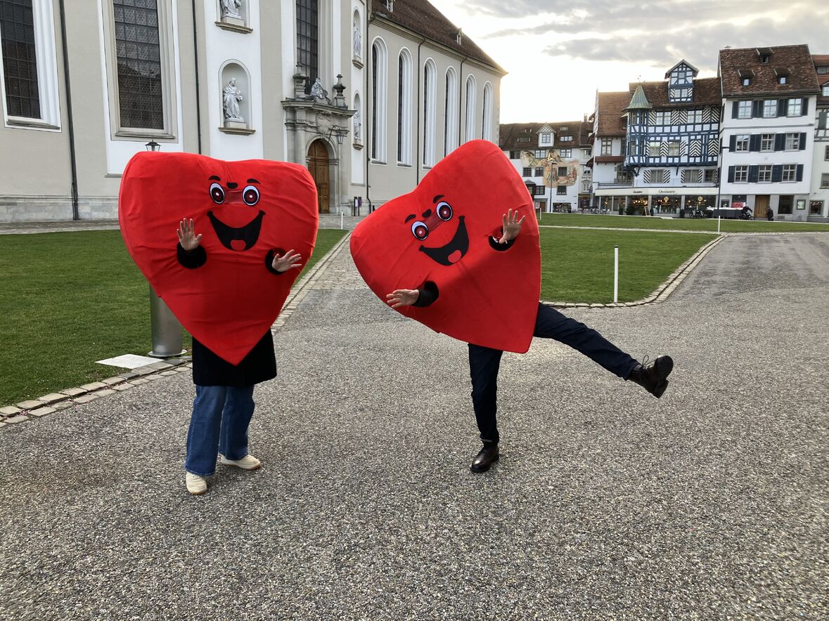 Der Aschermittwoch stand dieses Jahr in der Schutzengelkapelle ganz im Zeichen der Liebe - denn am gleichen Tag war ja auch Valentinstag! Als Herzen verkleidet tanzten und schlenderten Freiwillige und Mitarbeitende durch die Strassen der Innenstadt, um mit Flyern auf das Angebot zum Valentinstag in der Schutzengelkapelle aufmerksam zu machen. Natürlich waren unsere Herzen der Publikumsliebling der Passant:innen in der Innenstadt - als Fotomodelle und für Free Hugs.