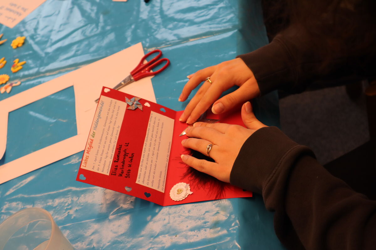 - Sie haben für die Mitglieder der Haldengemeinde Karten gestaltet mit der Bitte, dass die Gemeindeglieder den Erstkommunionkindern zur Erstkommunion Glückwunschkarten schreiben. So entsteht ein Kontakt in die Gemeinde hinein.