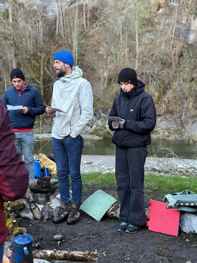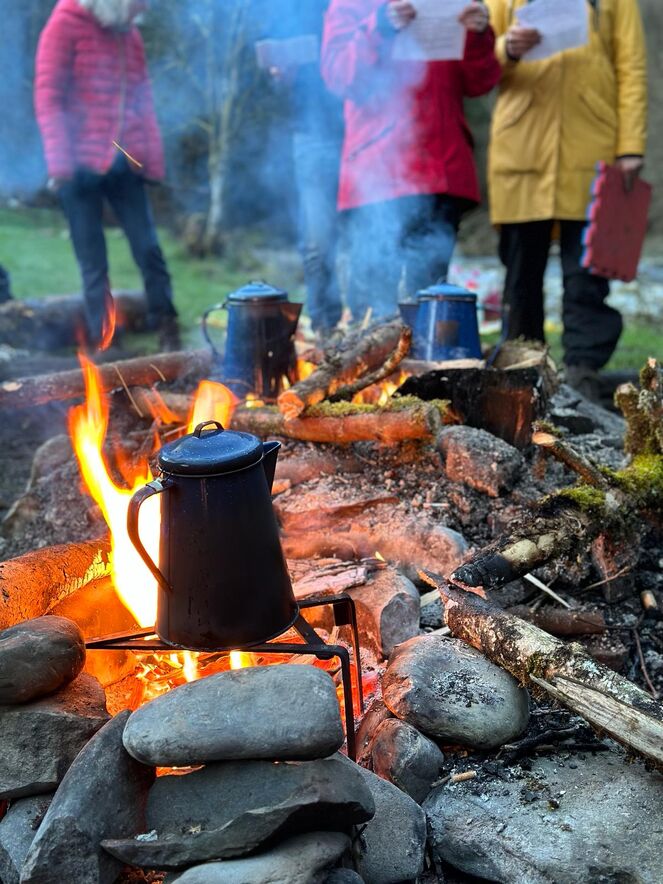 An der Sitter angelangt, wurde ein Feuer entfacht und so wie der Auferstandene Jesus mit den verblüfften Jüngern (Joh 21,1-14) damals am See von Tiberias das Morgenmahl gehalten - allerdings ohne Fische aber dafür mit Brotbrechen, Käse, Konfi und Colomba. Von der rauschenden Sitter liessen sich die Teilnehmenden dann ihr Ostergeheimnis erzählen und von dort aus starteten alle dann wieder in ihren je eigenen Ostertag.