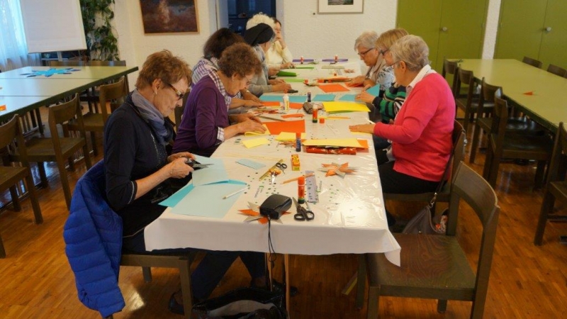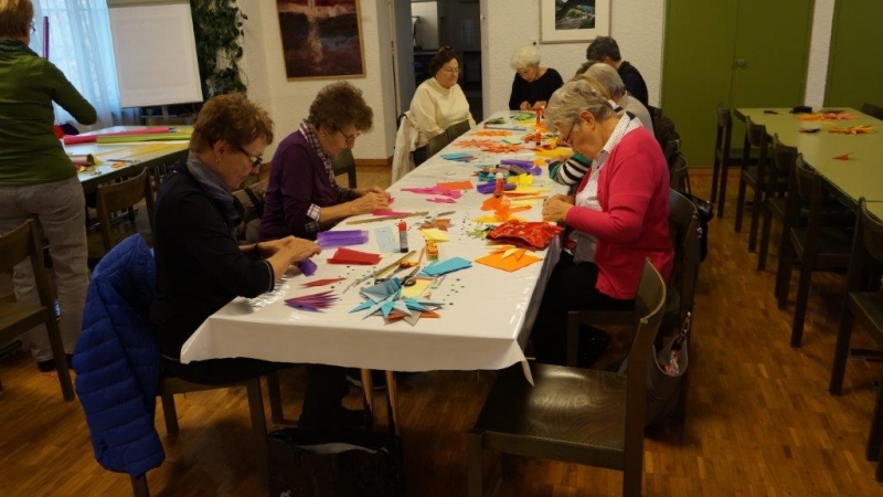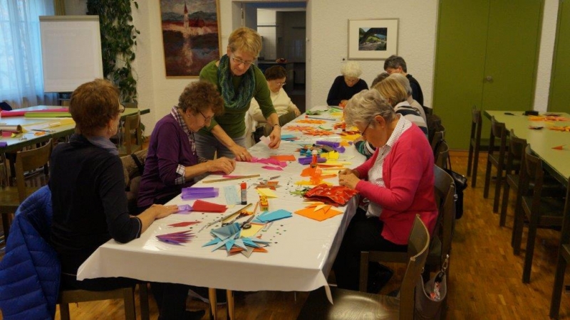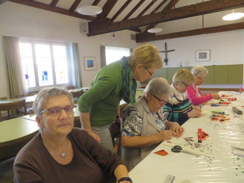 Um die eigene Wohnung zu schmücken, machten einige Frauen sich auf, selbst Sterne zu basteln. Unter der kundigen Führung von Margrith Bischoff wurden schöne Seidensterne gebastelt. Das Resultat kann sich sehen lassen.