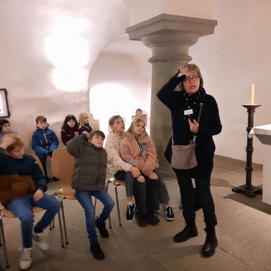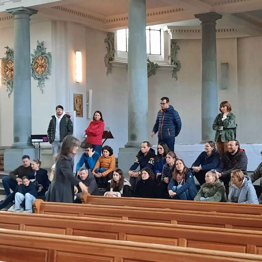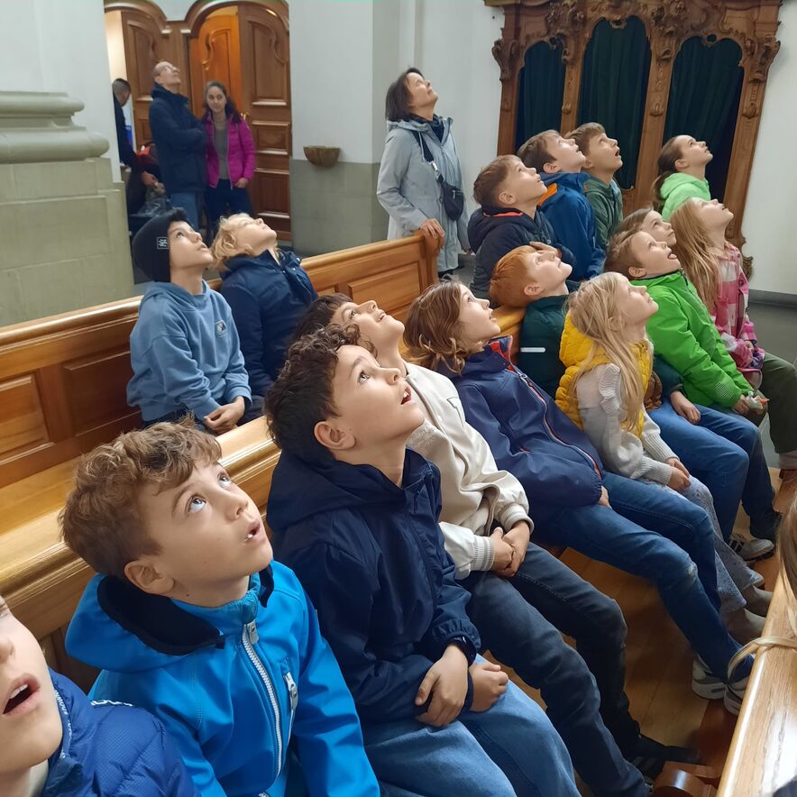 Am Samstag, 16. März haben sich 23 Erstkommunionkinder und ihre Familien, zusammen mit der Pfarreibeauftragten Brigitta Schmid Pfändler und der Katechetin Beatrice Bühler, zu einem interessanten Vorbereitungsmorgen getroffen. Begonnen haben sie bei einem gemeinsamen Einstieg und dem Singen der Lieder in der Kirche, worauf eine erste Gruppe mit dem Mesmer Anto Blazevic den Kirchturm erkundeten. Eine andere Gruppe hat die Geschichte : " Das Dunkle und das Helle" gehört und dann selber Bilder dazu gestaltet.