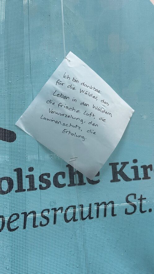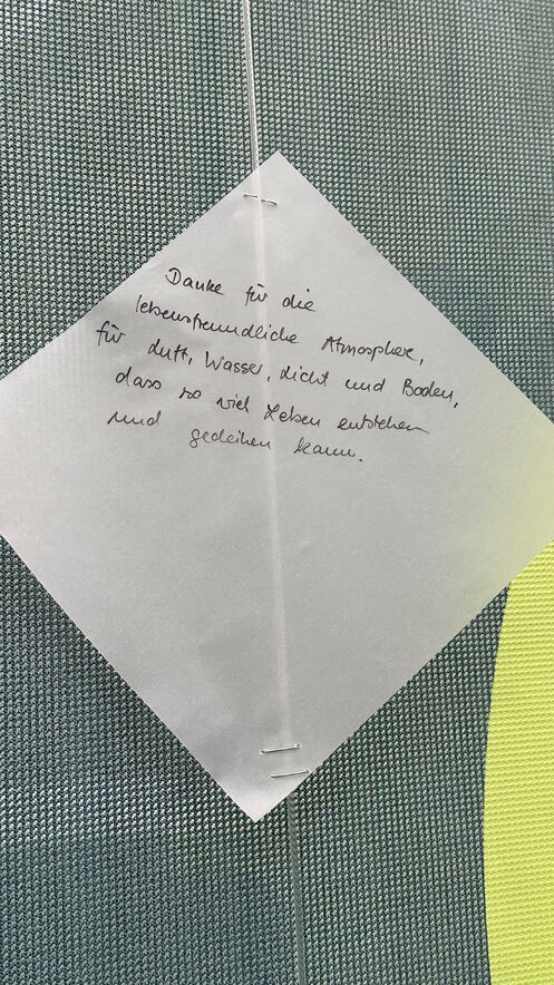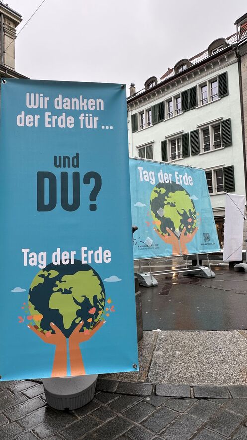 Danke beherzter Freiwilliger konnten wir am Bärenplatz viele Menschen ansprechen und sie dazu bewegen aufzuschreiben, wofür sie der Erde dankbar sind. Die beschrifteten Zettel haben wir dort an unsere grosse Bannerwall gehängt.