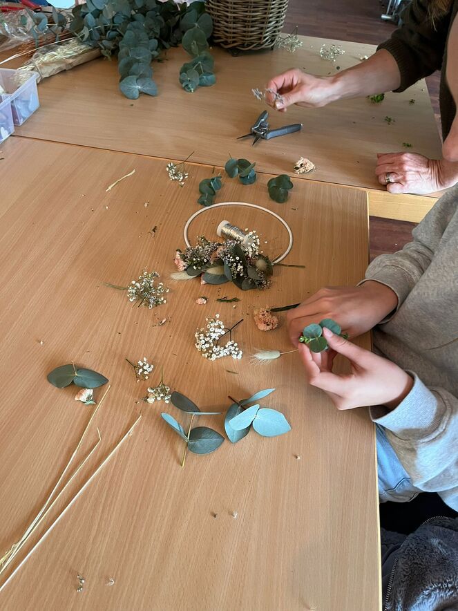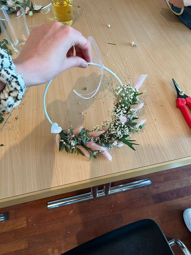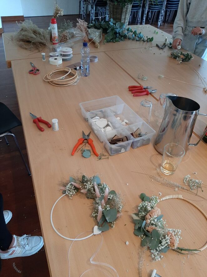 Am Donnerstagnachmittag, 18.April haben Jugendliche ab der 5. Klasse im Pfarreiheim Abtwil-St.Josefen zusammen mit der Jugendarbeiterin Julia Hämmerli und der Floristin Sandra Kern, wunderschöne Loops aus Trockenblumen kreiert. Die Jugendlichen, Sandra und Julia hatten dabei enorm viel Spass auch an der Musik, welche den Nachmittag aufgelockert hat.