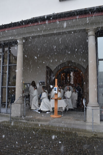 Leider konnte der Einzug mit der Musikgesellschaft Engelburg wetterbedingt nicht stattfinden. Ebenfalls wetterbedingt fand der Apero im Pfarreiheim statt.