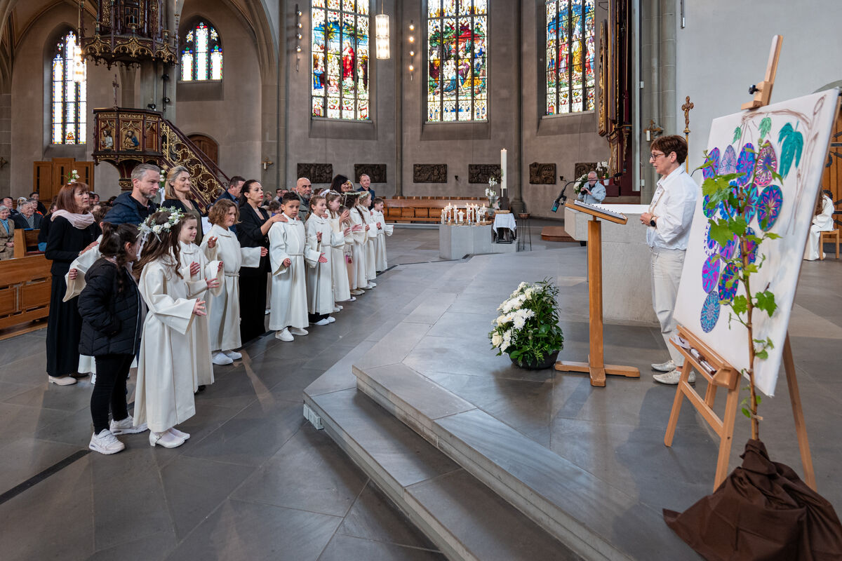 Voll Freude und Glück im Herzen haben unsere Erstkommunionkinder ihren Festgottesdienst gefeiert. Es wurde viel gesungen, eine wundervolle Traube aus Mandalas ist als Bild entstanden und dank einer Rücken-Geschichte haben die Kinder körperlich spüren dürfen, wie gut Liebe tut.