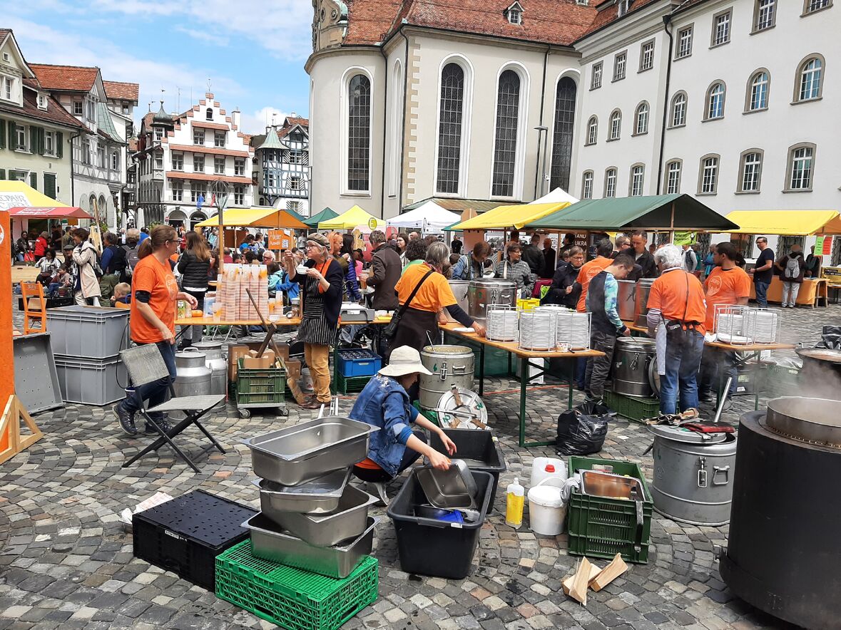 In über 30 Ateliers zu Umwelt- und sozialen Themen bot das SUFO eine Plattform für einen lebhaften Austausch von Kultur und Bildung. An zahlreichen Ständen und reich illustrierten Infotafeln wurde zum nachhaltigen Konsum angeregt. Für das leibliche Wohl sorgte die kostenlose Verpflegung eines feinen Essens aus gerettetem Gemüse und Obst. Dieses wurde bereits am Vortag auf dem Kornhausplatz mit Freiwilligen an der «Schnippeldisco» gerüstet. Dieser schweizweit einzigartige Anlass hat zahlreiche Besucherinnen und Besucher angezogen. Auch die Cityseelsorge hat sich vom SUFO-Geist inspirieren lassen und den Anlass in unterschiedlicher Weise mitgestaltet: Planung, Organisation, Stände, Infotafeln oder Ateliers. Auch dieses Mal konnten wir wieder auf die zahlreiche Unterstützung von Freiwilligen zählen – herzlichen Dank!