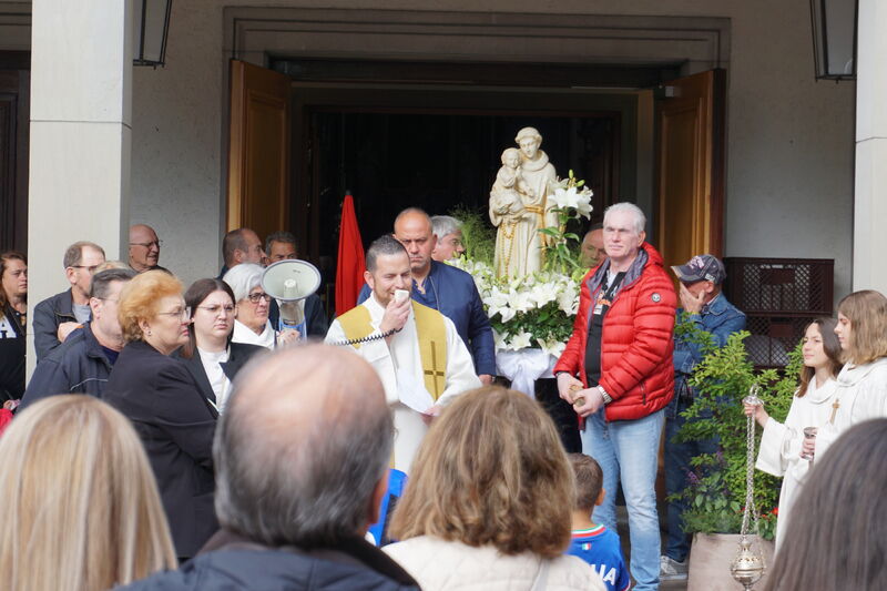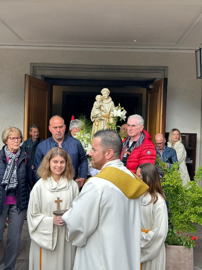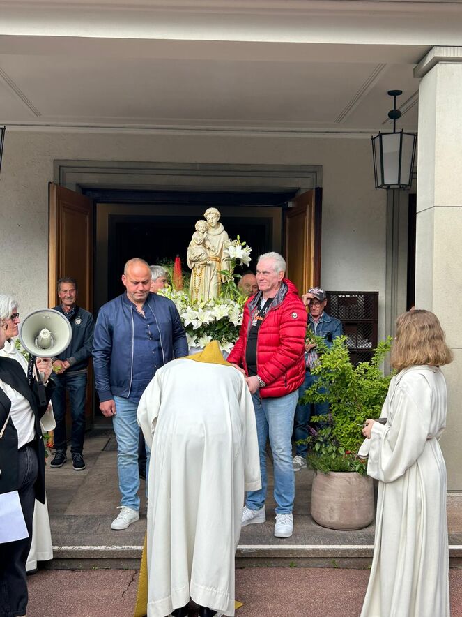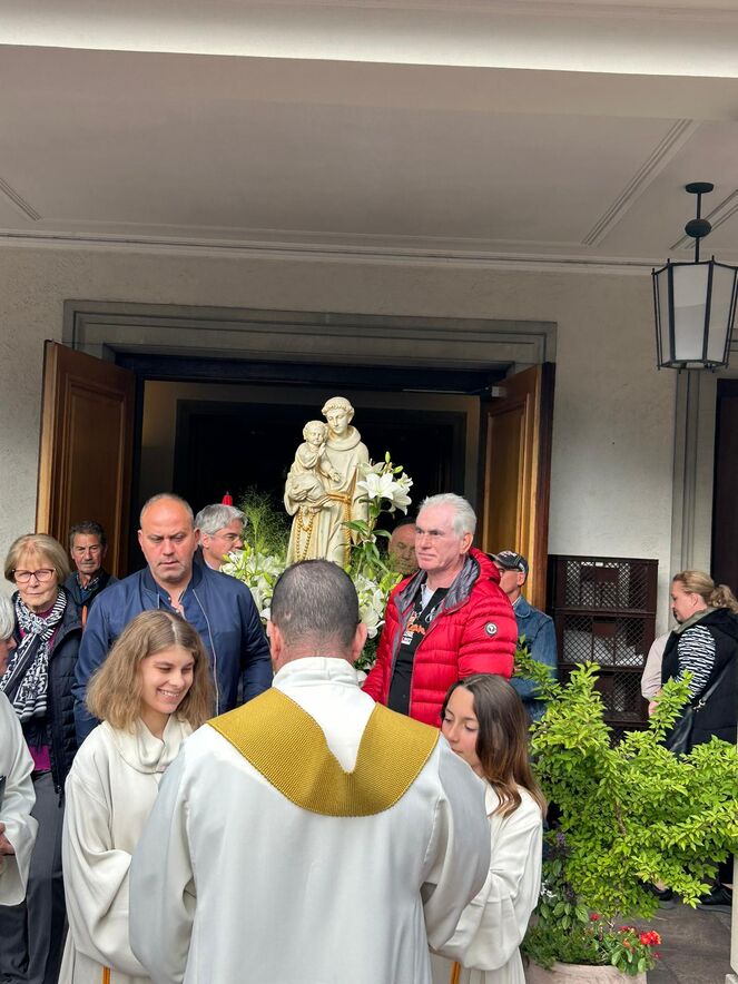 Anche quest'anno si è svolta la festa in onore del nostro Santo Patrono Antonio di Padova. Grande partecipazione, profonda preghiera e immensa gioia. La processione si è svolta come sempre tra gli ospedali di San Gallo: Kantosspital, Burgerspital e Kinderspital. Alle 19:00 arrivo presso la Chiesa di St. Fiden gremita in ogni suo posto per celebrare solennemente la Santa Messa, animata dalla nostra splendida Corale Santa Cecilia. Al termine della celebrazione eucaristica tutti nella Pfarreisaal di St. Fiden per gustare il buonissimo Menu preparato ad hoc, guardare la Partita dell'Italia ascoltando ottima musica Live e concludere la serata con il Concerto del Grande Paolo Meneguzzi. Grazie a tutti voi della bellissima serata passata insieme, che il Signore vi benedica.