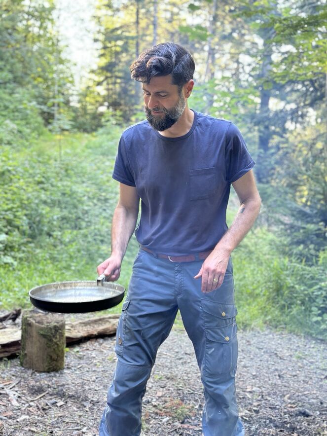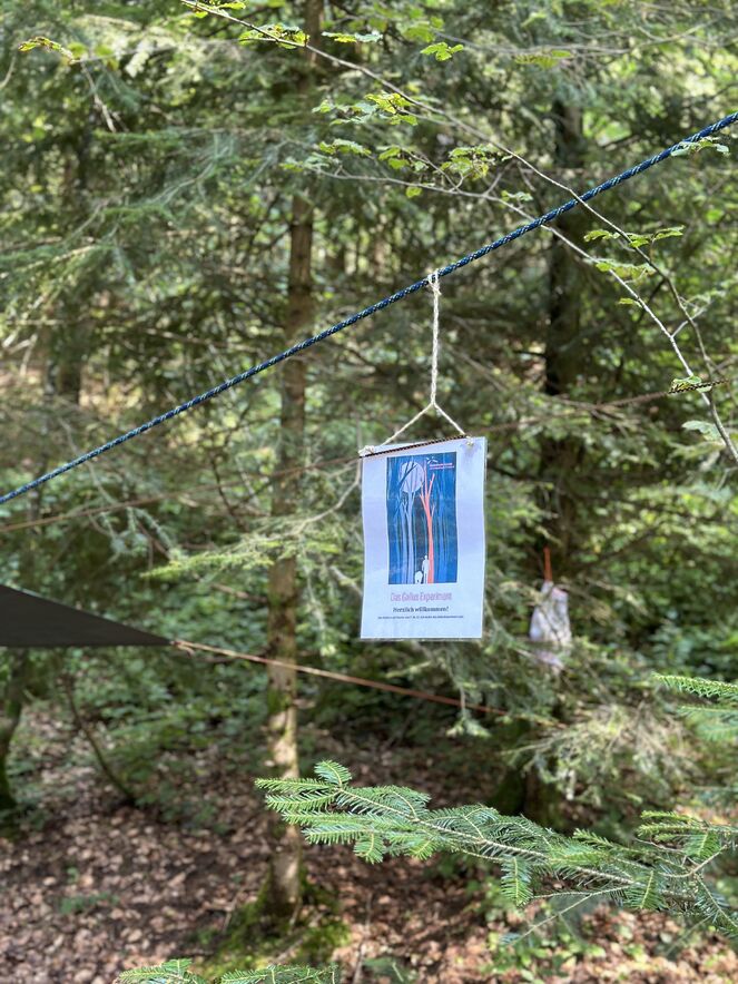 Hinter "Das GallusExperiment 2024" verbirgt sich eine WaldAuszeit für Männer. Am Freitag sind die Teilnehmenden von ihrer Woche Waldexerzitien erfüllt und bereichert zurückgekehrt. Das, was vor rund 1400 Jahren der irische Mönch Gallus erlebt hat, der sich auf dem Gebiet unserer heutigen Stadt St. Gallen niederliess, konnten wir in diesr Woche – teilweise – wieder erlebbar machen: Er lebte inmitten der Wildnis des Waldes rund um die Steinach - wir am Rütibach, einem Zufluss zur Steinach. Sein Leben orientierte er am Gebet und der Suche nach Gott. Von dieser besonderen Art der Lebensgestaltung (spirituell – einfach – naturverbunden) haben wir uns inspirieren lassen und wir konnten selbst erfahren, dass Gallus‘ Leben uns auch heute noch spirituell Kraft mitgeben kann. Unser Tagesablauf war von einem klaren Rhythmus geprägt: Meditation, Achtsamkeitsübungen, gemeinsame Mahlzeiten und Austausch - und das alles im Wald.