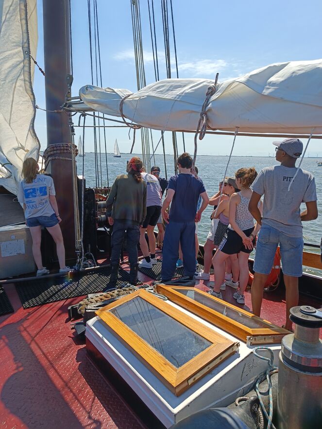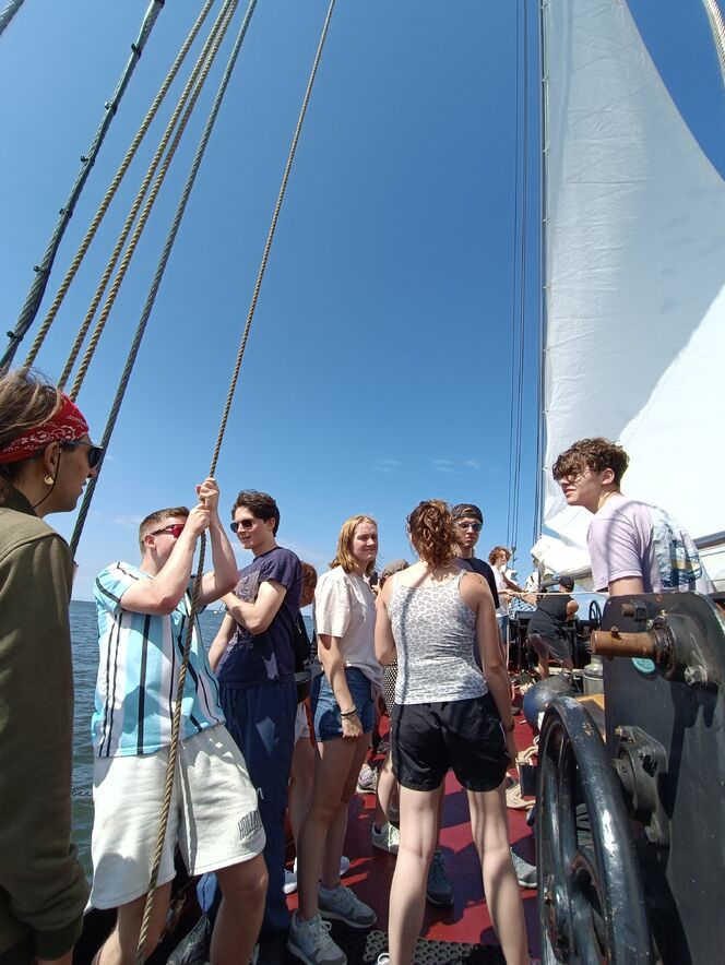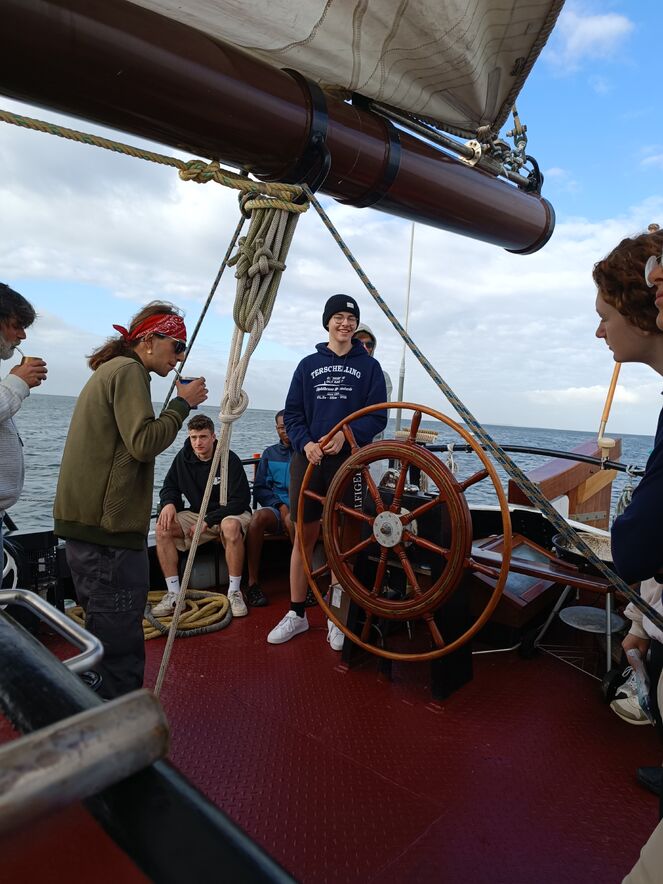 Unser Abenteuer begann mit einer spannenden Busfahrt nach Harlingen, wo wir die Segel hissen und uns auf die Erkundung der nahegelegenen Inseln begaben. Auf unseren Schiffen schlugen wir unser Lager auf: Hier genossen wir unser Essen und nächtigten unter dem sternenübersäten Himmel, während wir sanft auf den Wellen schaukelten.