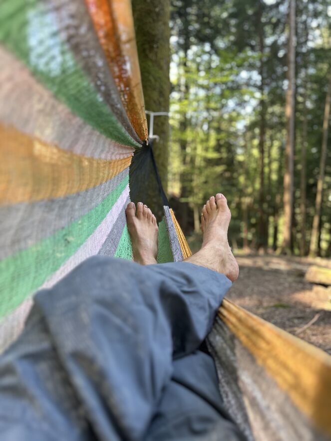 - und in Hängematten konnten wir uns fallen lassen und uns ganz dem Blau des Himmels und dem Blätterdach über uns hingeben