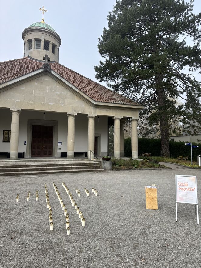 Gleichzeitig waren auch Seelsorgende und Freiwillige anwesend, um auf Wunsch Menschen ans Grab zu begleiten, um dieses zu segnen. Das Angebot wurde gut genutzt und dankbar angenommen. Über 230 Kerzen und Weihwasserfläschchen konnten so abgegeben werden.