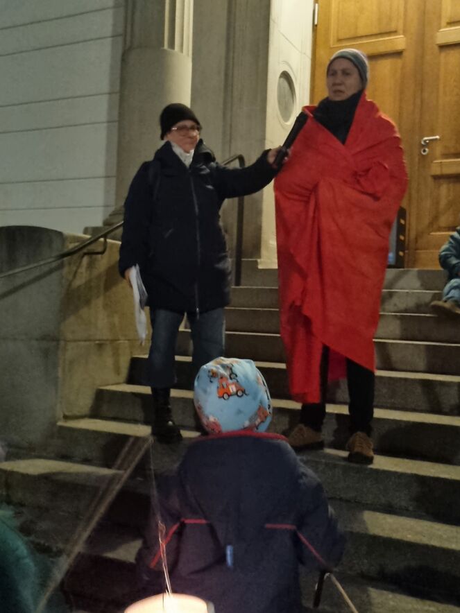 Zum Abschluss wärmten sich alle bei Punsch und Gebäck, dankbar für die Feier in guter Gemeinschaft.