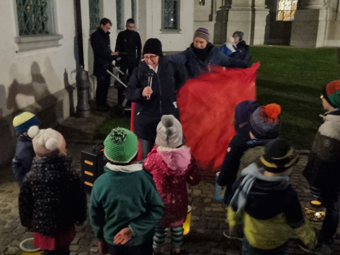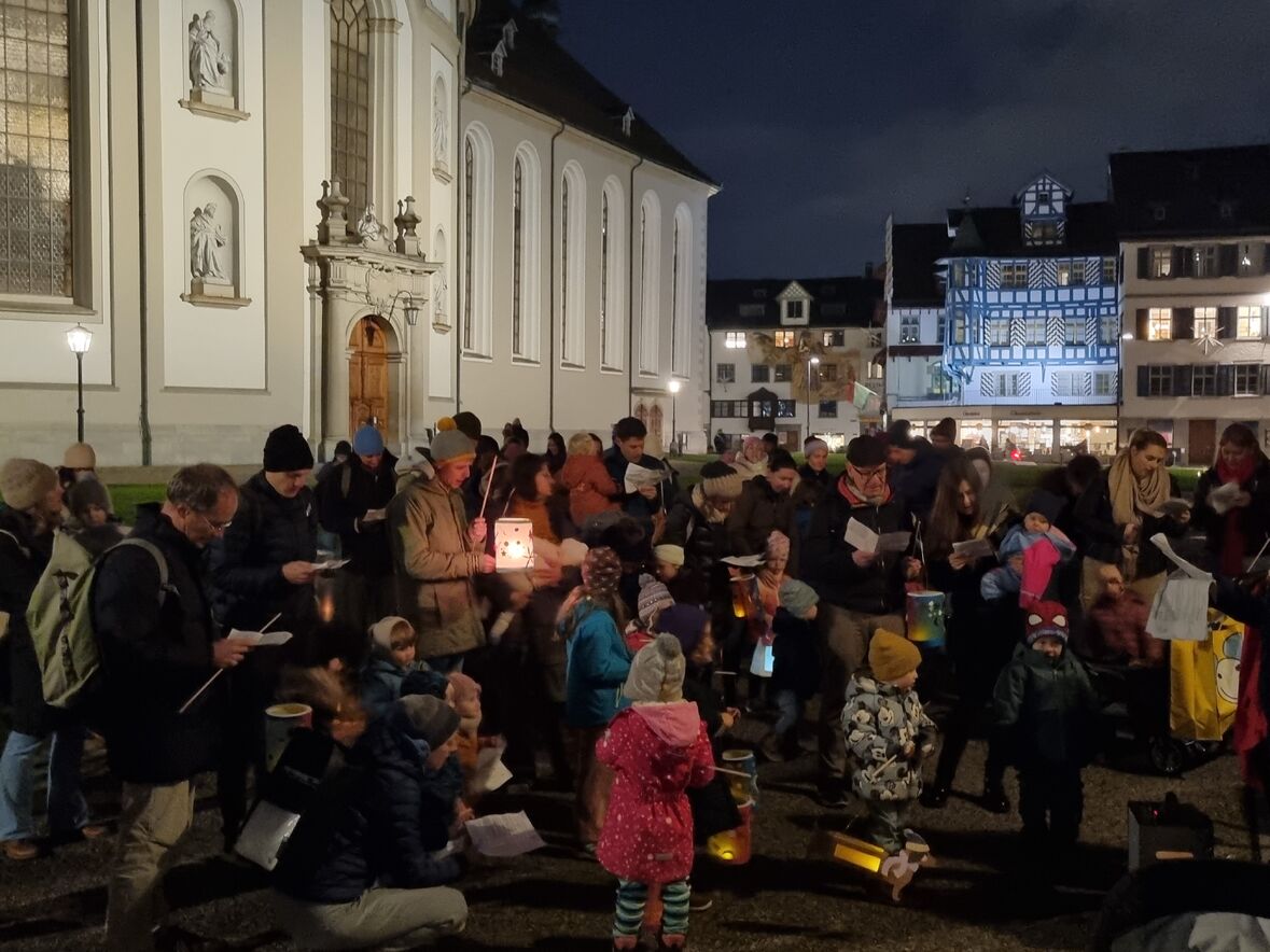 Mit selbstgebastelten Laternen machten sich viele Familien und Kinder auf einen Stationenweg durch das Klosterviertel. Dabei hörten sie aus dem Leben des heiligen Martin und sangen Lieder.