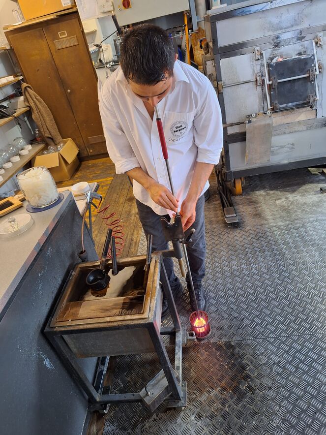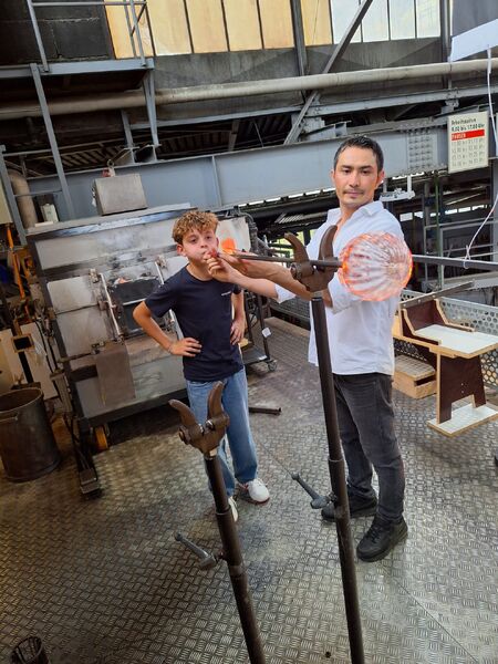Gut gelaunt und mit viel Neugier im Gepäck ist die Ministrantengruppe am Samstagmorgen 24. Oktober mit Brigitta Schmid und Anto Blazevic nach Hergiswil aufgebrochen. Selbst das dreimal Umsteigen hat dieser Laune keinen Abbruch getan. Kaum angekommen stellte sich die Gruppe an, damit jede und jeder eine eigene grosse Kugel blasen konnte - und das mit überraschenden Resultaten.